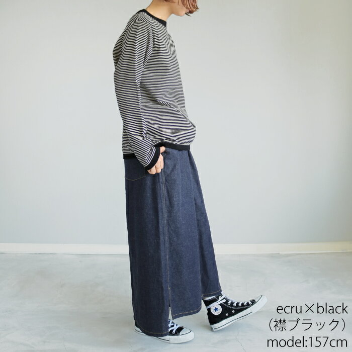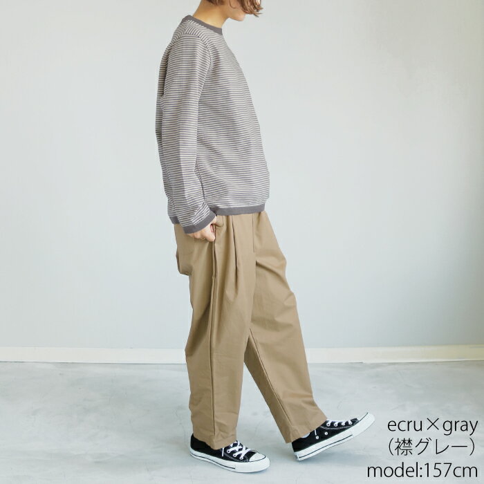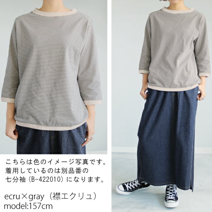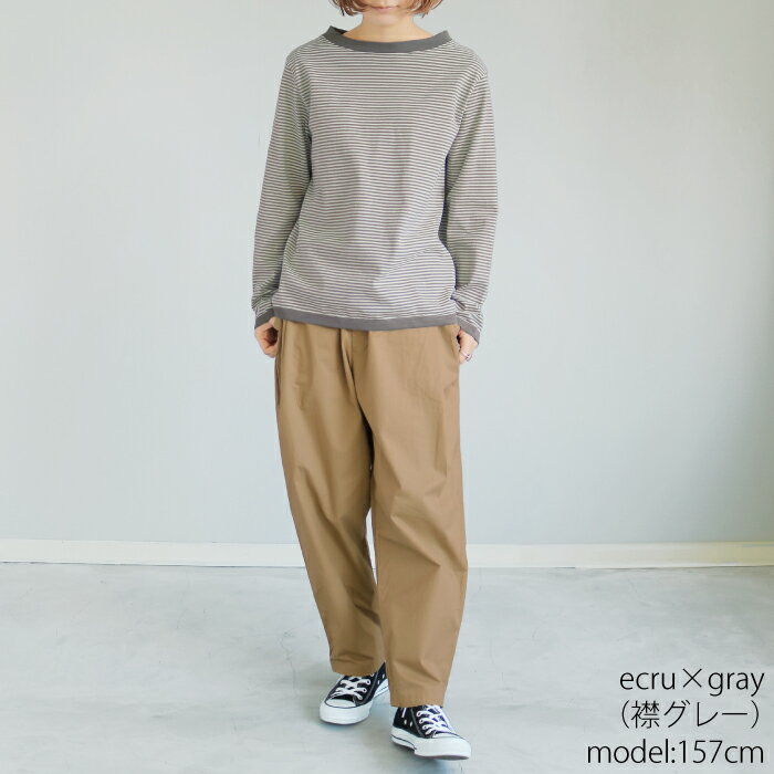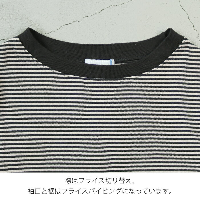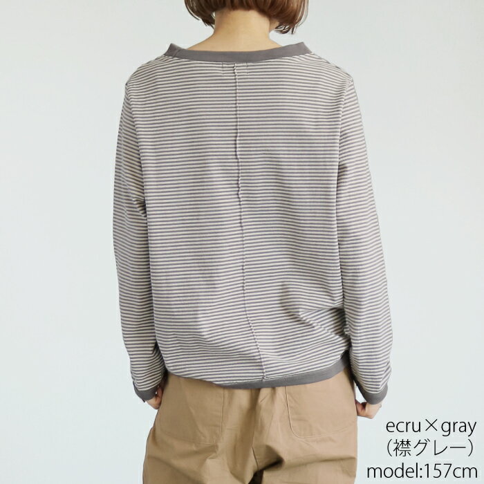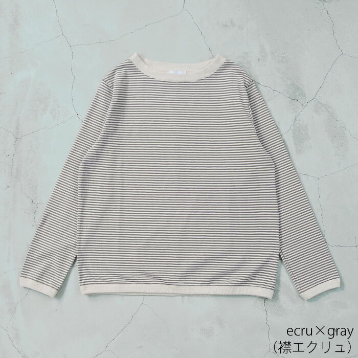 【ポイント10倍+クーポン有!】【日本製】体のラインを拾いにくいしっかり天竺ボーダーカットソー 細ボーダー 長袖 Tシャツ プルオーバー ロンT グレー ボーダー 大人カジュアル BLUE LAKE MARKET ブルーレイクマーケット 秋冬 春 レディース 綿100% 送料無料 B-492030