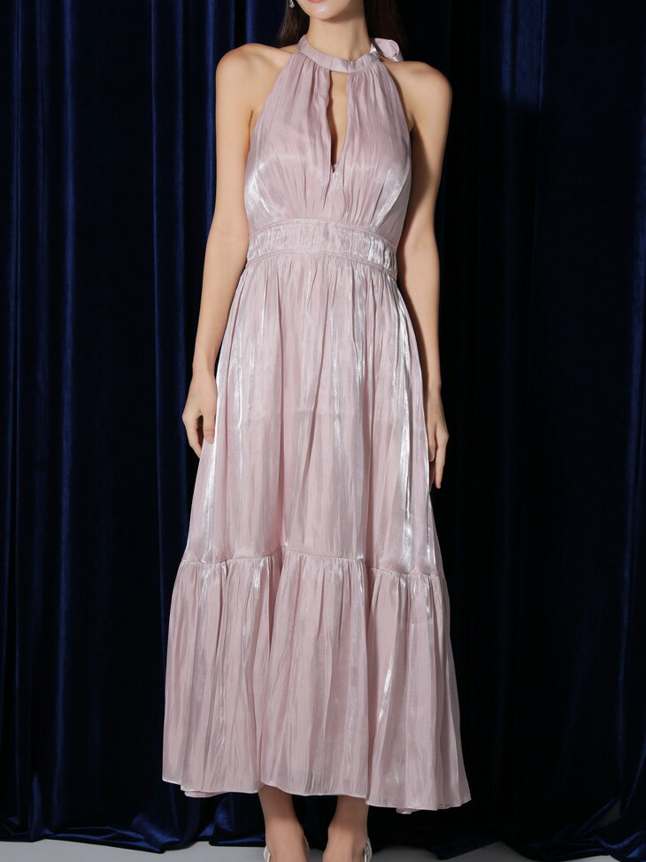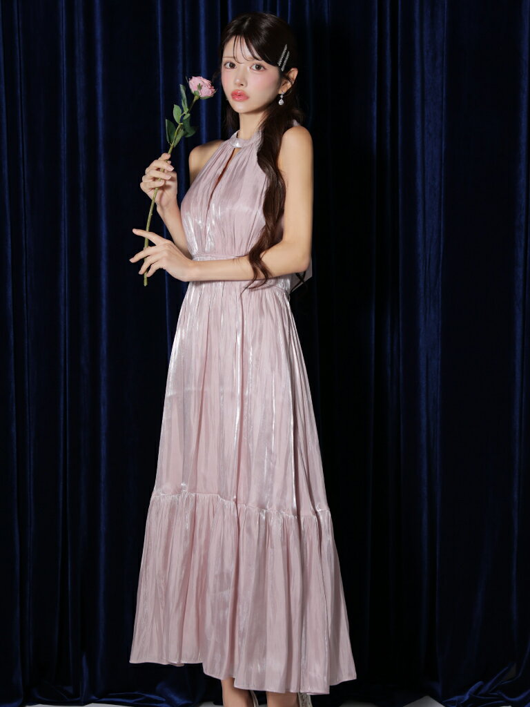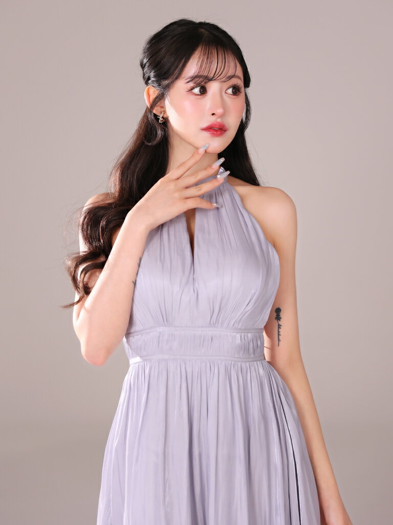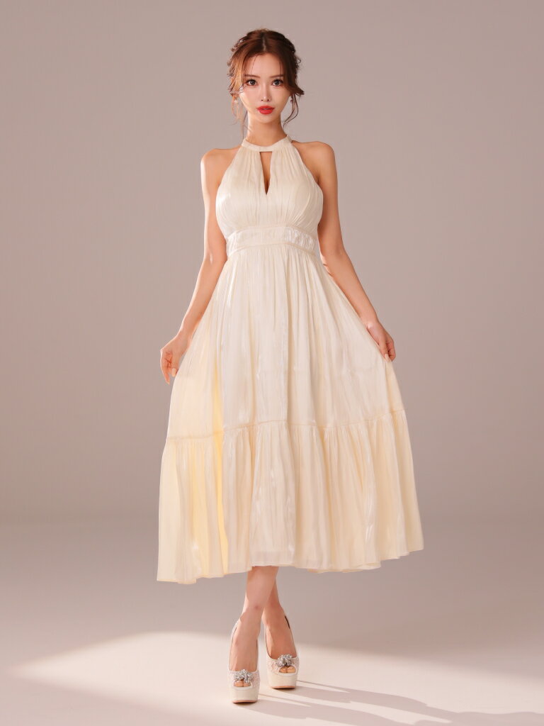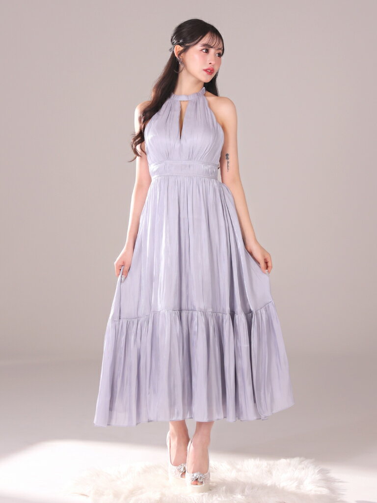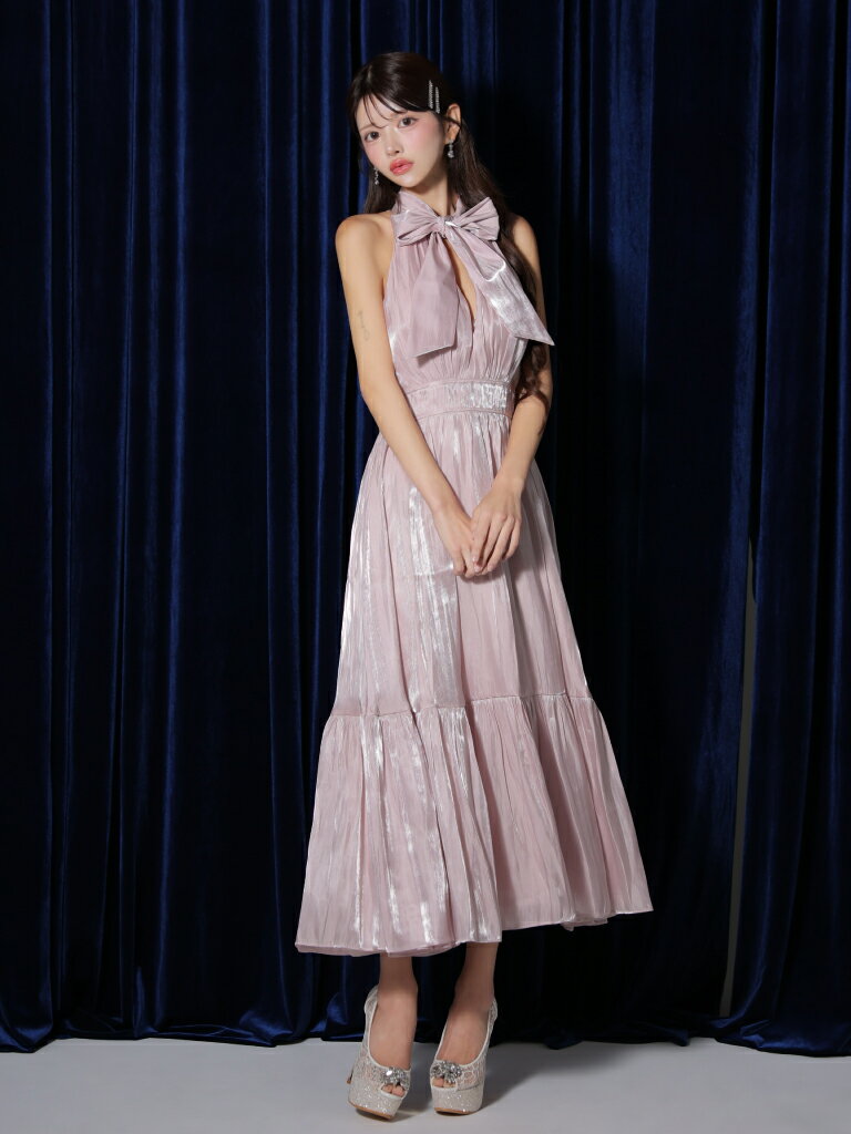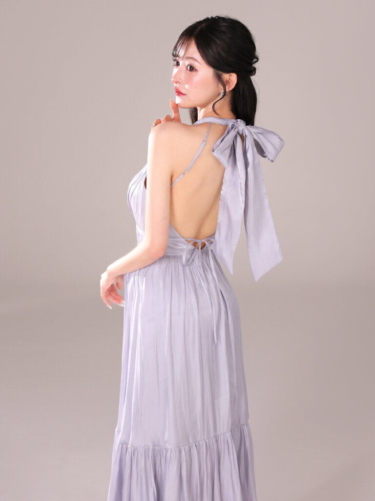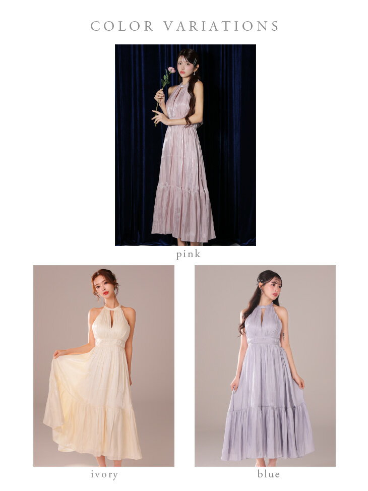 【DEA. by ROBE de FLEURS/ディアバイローブドフルール】 サテン/ ティアード/ 2WAY/ リボン/ アメスリ/ ホルターネック/背中あき / フレア/ ミディドレス/ キャバドレス/ ワンピース [DE3366] ミディアムドレス ナイトドレス ロングドレス 結婚式 パーティー