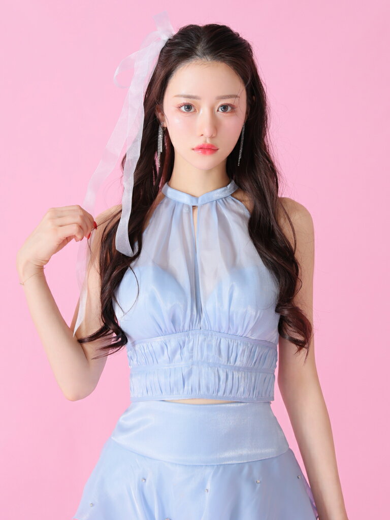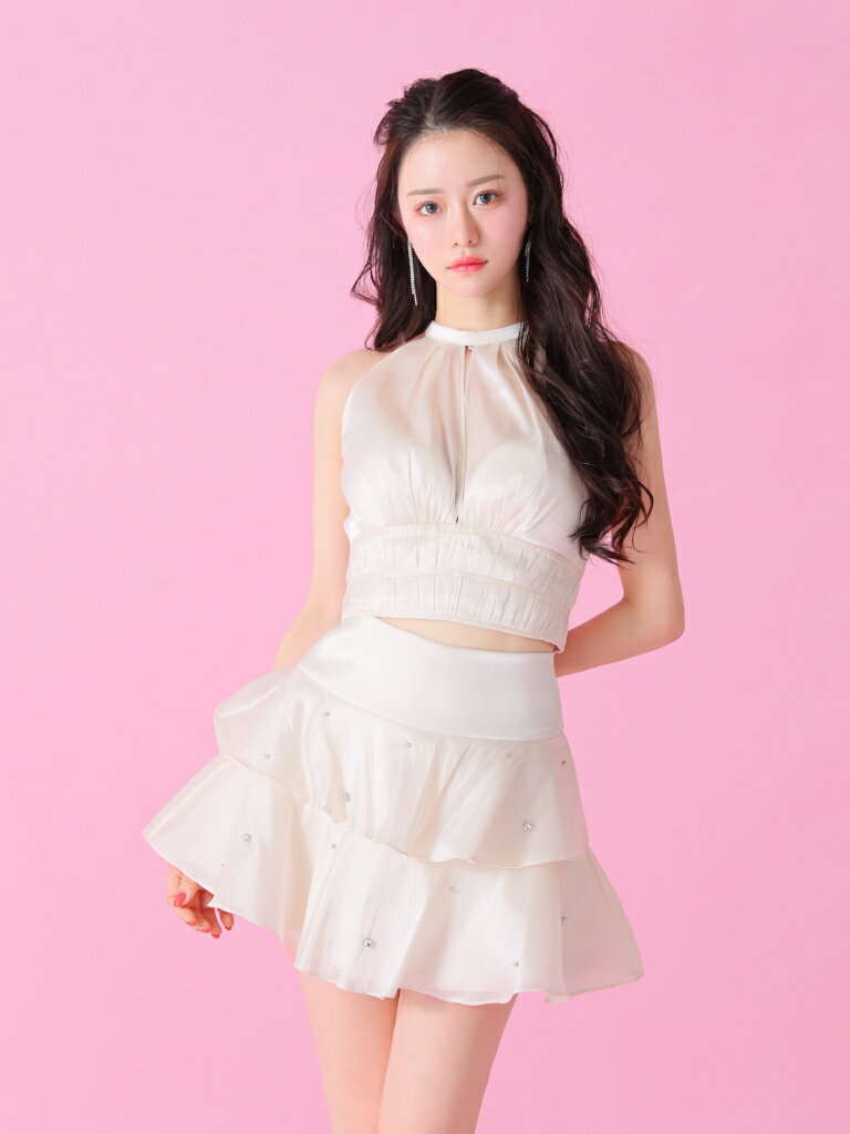 【ROBE de FLEURS / ローブドフルール】サテン/ オーガンジー/ ビジュー/ アメスリ/ ホルターネック/ 背中あき/ ティアード/ フレア/ セットアップ/ ミニドレス/ キャバドレス / ワンピース [fm3593] ナイトドレス ツーピース セパレート インスタ 可愛い マーメイド フリル