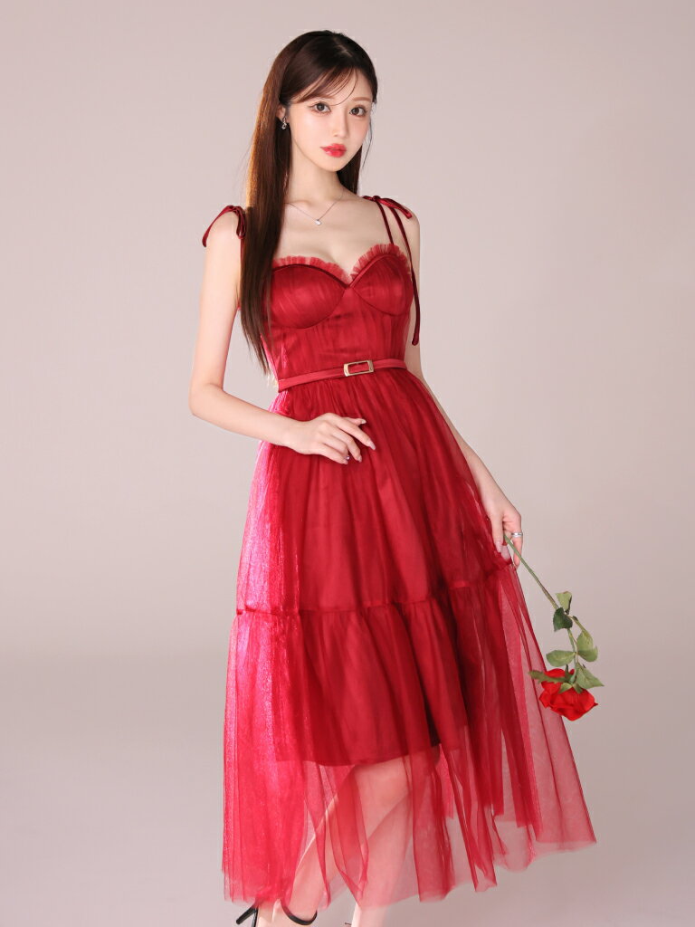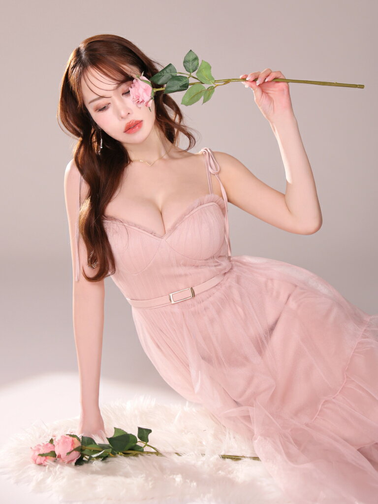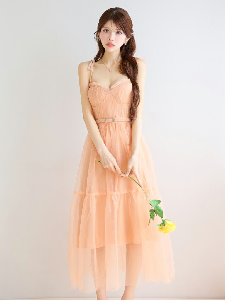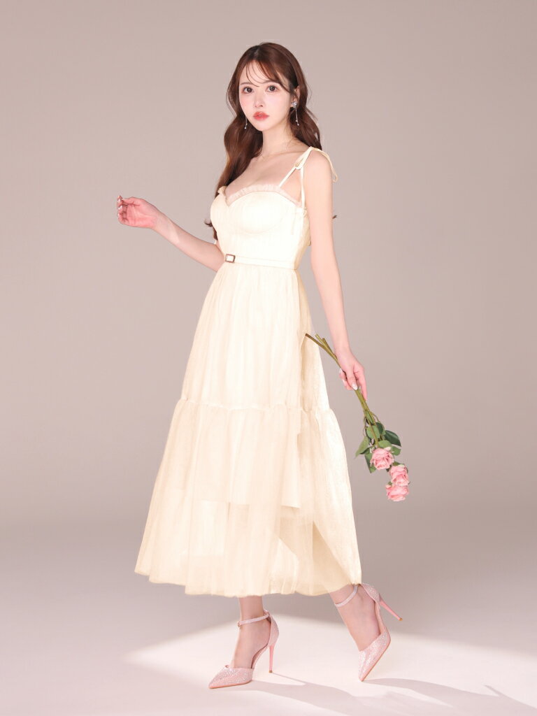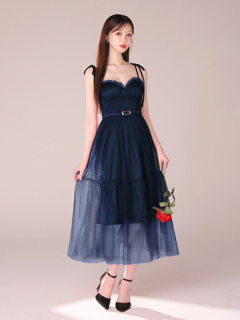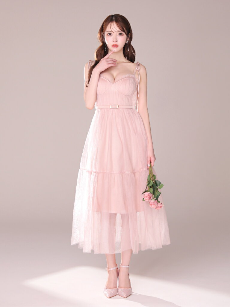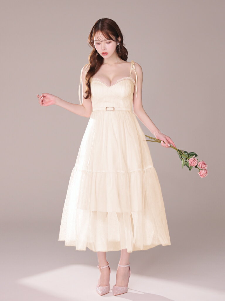 【新色追加】【再入荷】【DEA. by ROBE de FLEURS/ディアバイローブドフルール】 チュール/ ギャザー/ 肩リボン/ キャミ/ ベルト/ フレア/ ミディドレス/ キャバドレス/ ワンピース [DE3745] ミディアムドレス ナイトドレス シンプル ロングドレス パーティー キャミワンピ