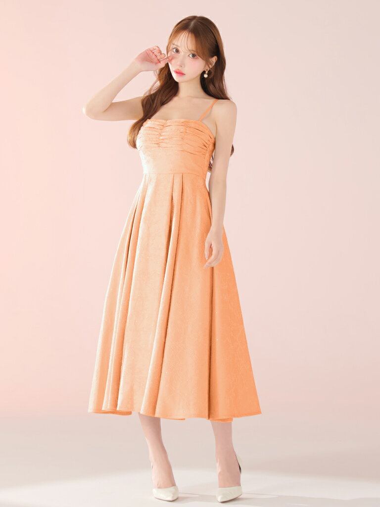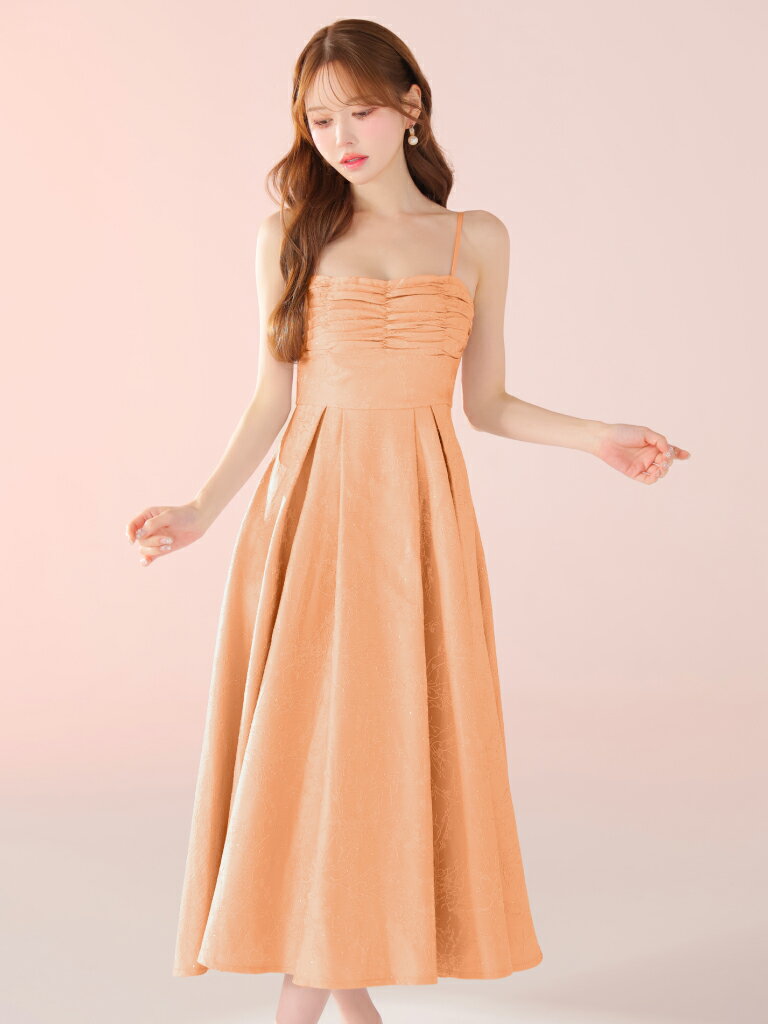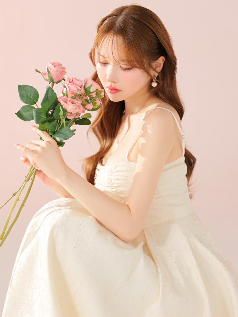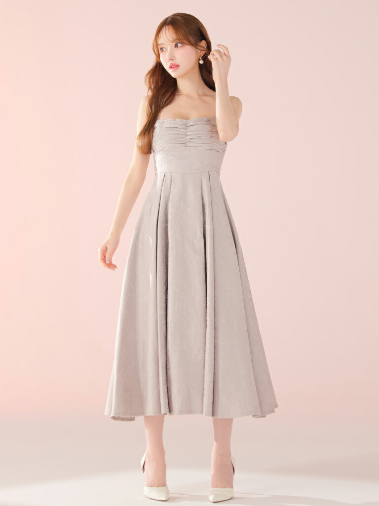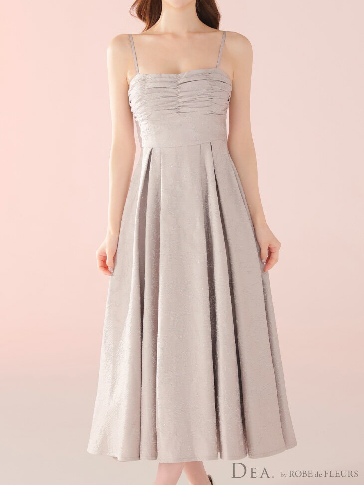 【DEA. by ROBE de FLEURS/ディアバイローブドフルール】ラインストーン/ ジャガード/ ギャザー/ ベア/ キャミ/ フレア/ ロングドレス/ ミディドレス/ キャバドレス/ ワンピース [DE3459] ミモレ丈 ミディアムドレス ナイトドレス パーティー Aライン 花柄