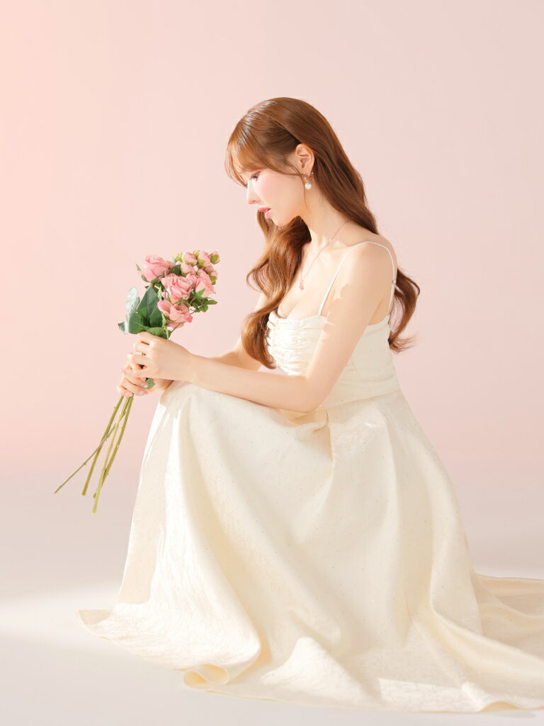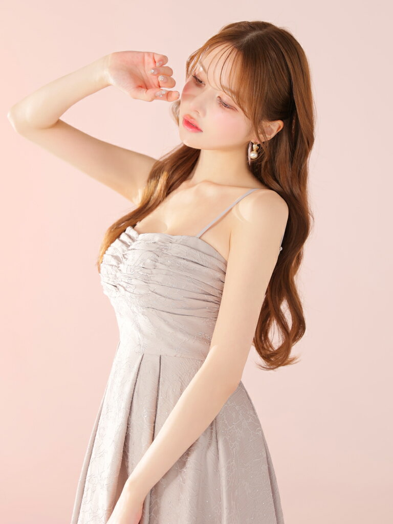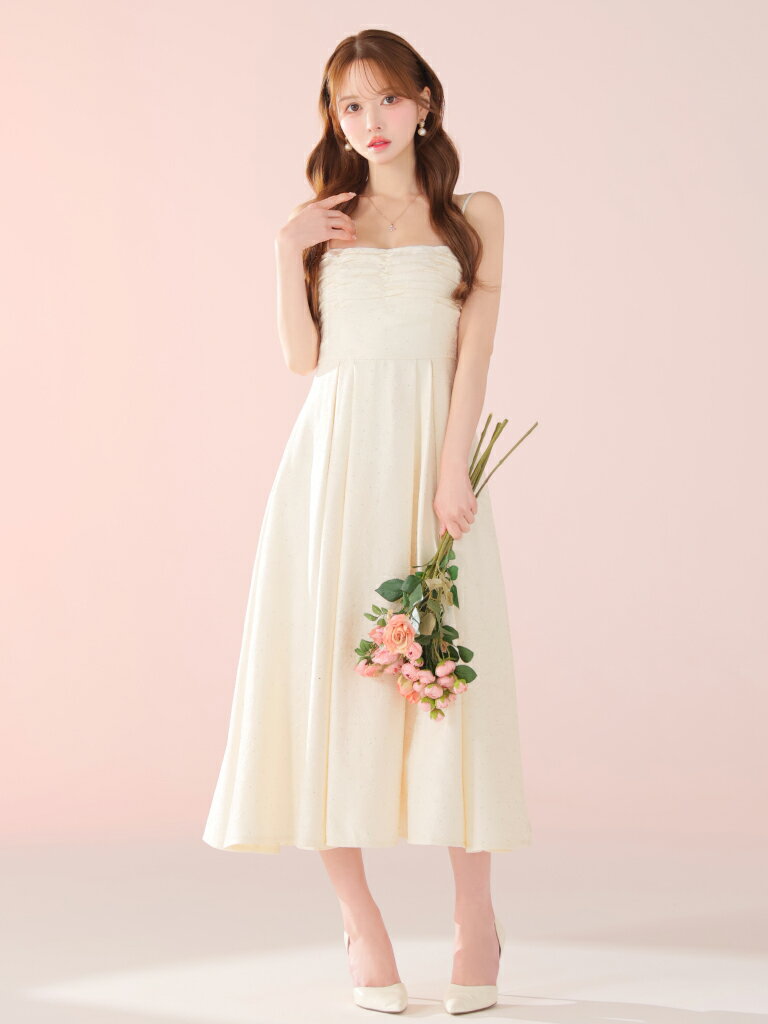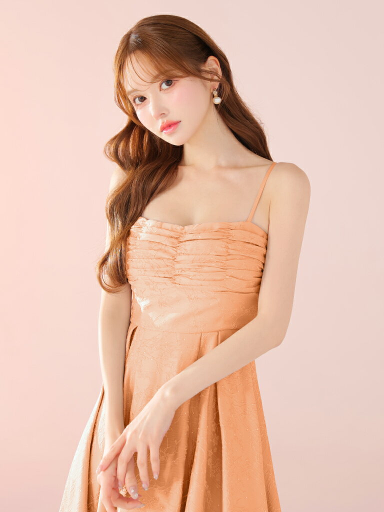 【DEA. by ROBE de FLEURS/ディアバイローブドフルール】ラインストーン/ ジャガード/ ギャザー/ ベア/ キャミ/ フレア/ ロングドレス/ ミディドレス/ キャバドレス/ ワンピース [DE3459] ミモレ丈 ミディアムドレス ナイトドレス パーティー Aライン 花柄