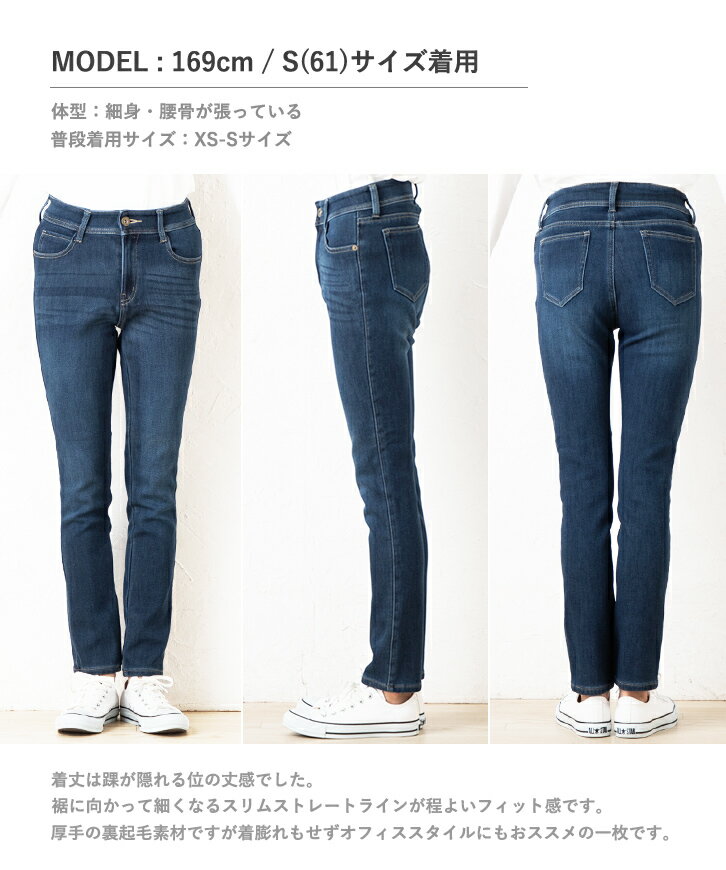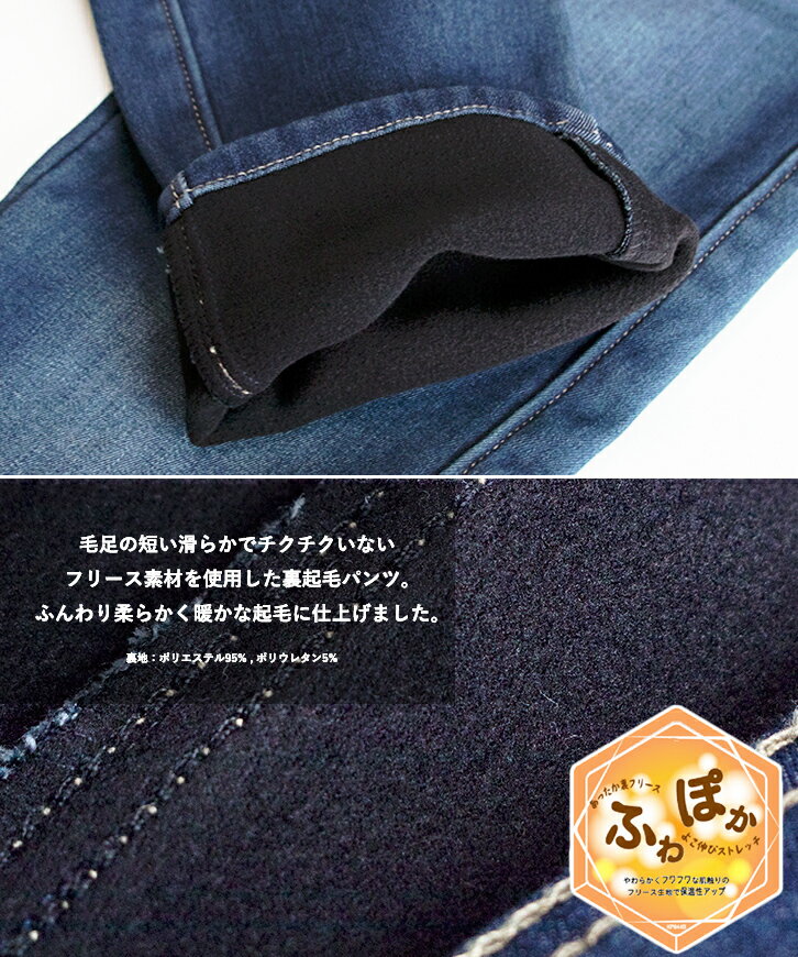 【XS~6L】【秋冬】ふわぽか 裏フリース 裏起毛 スリム ストレート パンツ (丈標準72cm) デニム ジーンズ ツイル ストレッチ 微起毛 ボンディング起毛 裏ボアパンツ 大きいサイズ 防寒 暖パン ゆるフィット スキニー 厚手 秋冬 レディース