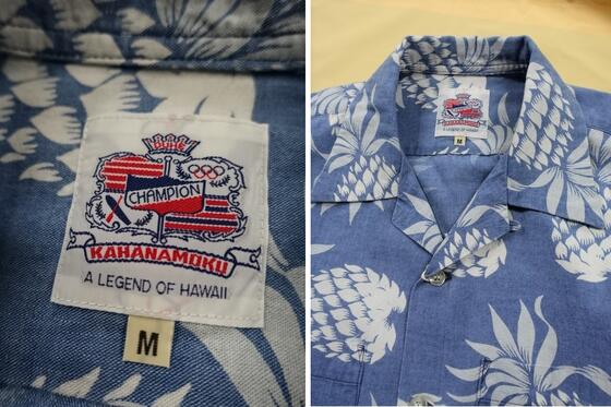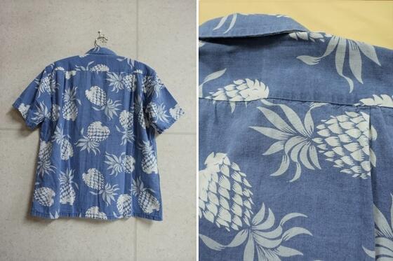 DUKE KAHANAMOKU (DUKE'S PINEAPPLE)デュークス・パイナップルインディゴコットンハワイアンシャツ(コットンアロハシャツ)INDIGO COTTON HAWAIIAN SHIRT DK39045デューク・カハナモク (SUNSURFサンサーフ)MADE IN JAPAN日本製