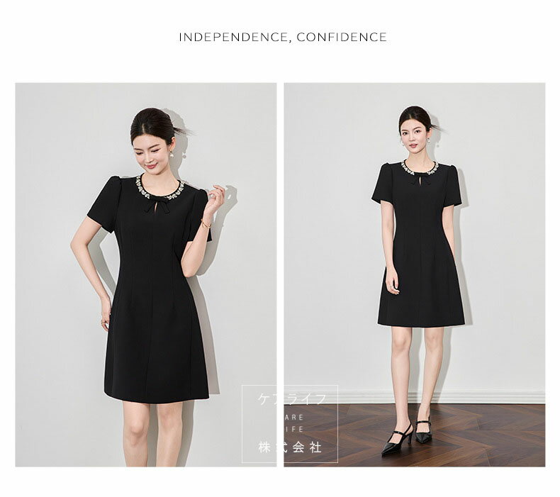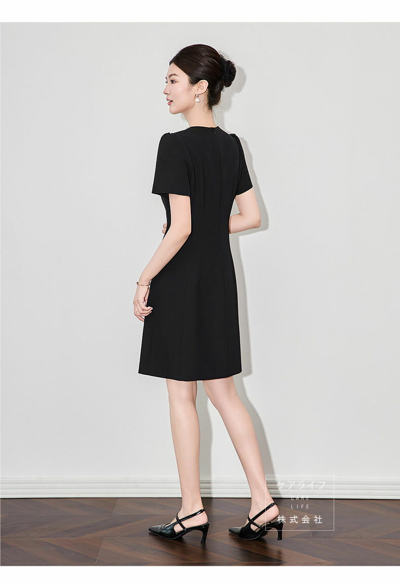 【夏ワンピース】セレモニーワンピーススーツ ひざ上丈ショート丈ワンピース 半袖ツイルドレス 結婚式ワンピース フェミニンドレス Aラインパーティードレス フィスビジネス通勤イベント仕事用ワンピースデートディナー誕生会ドレス入学式卒業式ドレス 無地ミニドレス