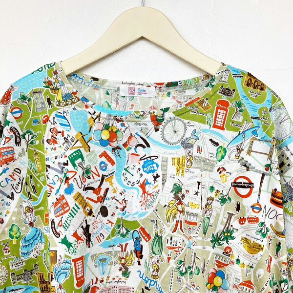 日本製 TUNIC チュニック80双天竺素材リトルワールドシリーズ5分袖Tシャツ丸首M〜L6325母の日 プレゼント お部屋着