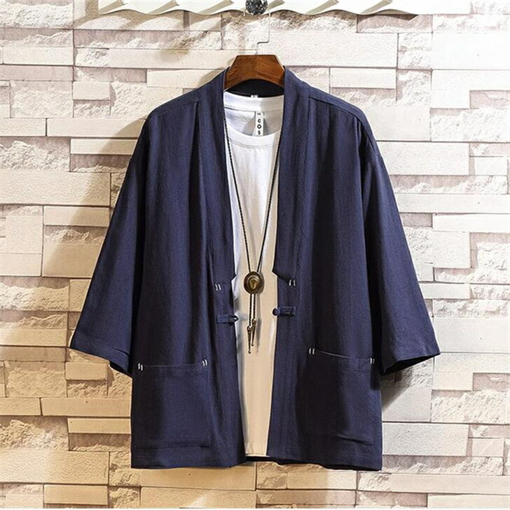 羽織 メンズ 着物 カーディガン 7分袖 トップス 甚平 浴衣風 ジャケット はおり 薄手 カジュアル おしゃれ 父の日 プレゼント
