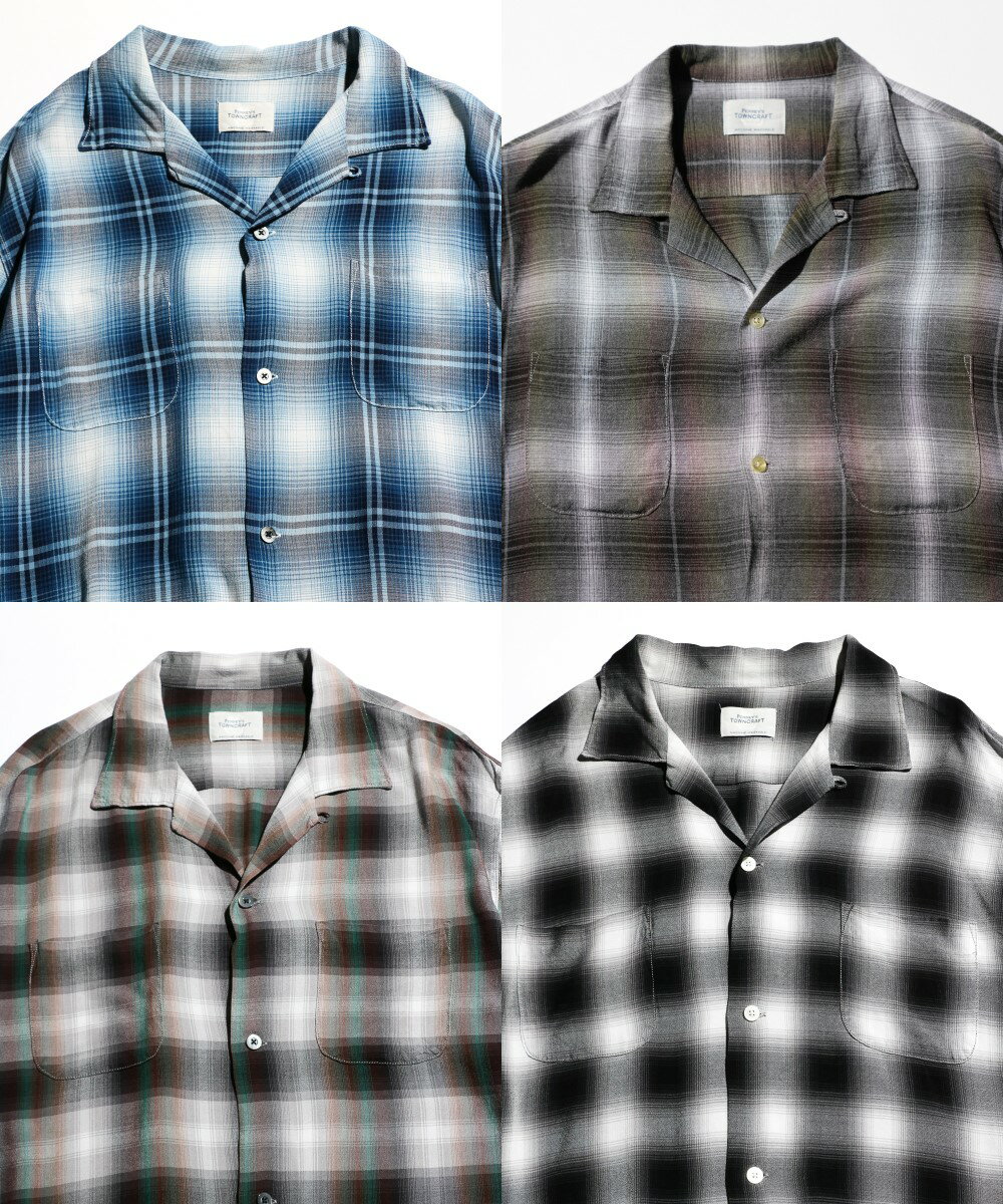 【TOWNCRAFT / タウンクラフト】 60S LOOP COLLAR SS SHIRTS 半袖 オンブレチェック オープンカラー 半袖シャツ