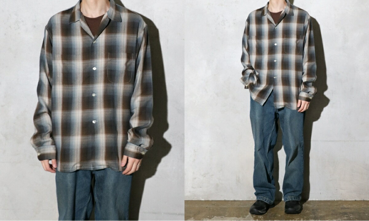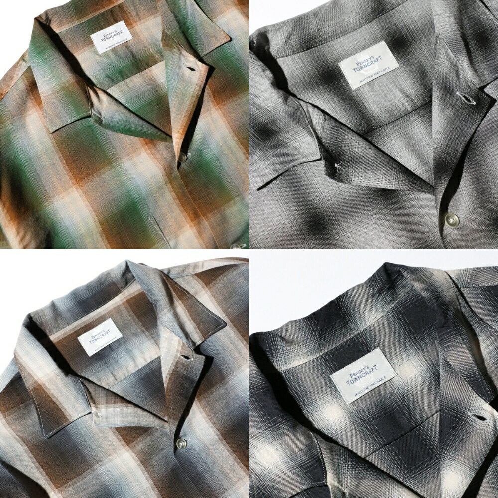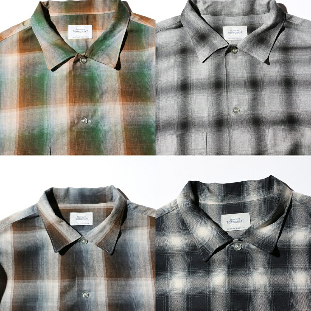 【TOWNCRAFT / タウンクラフト】60S OMBRE PLAID RAYON SHIRT MADE IN JAPAN ボックスシルエット オープンカラー オンブレチェックシャツ ネルシャツ