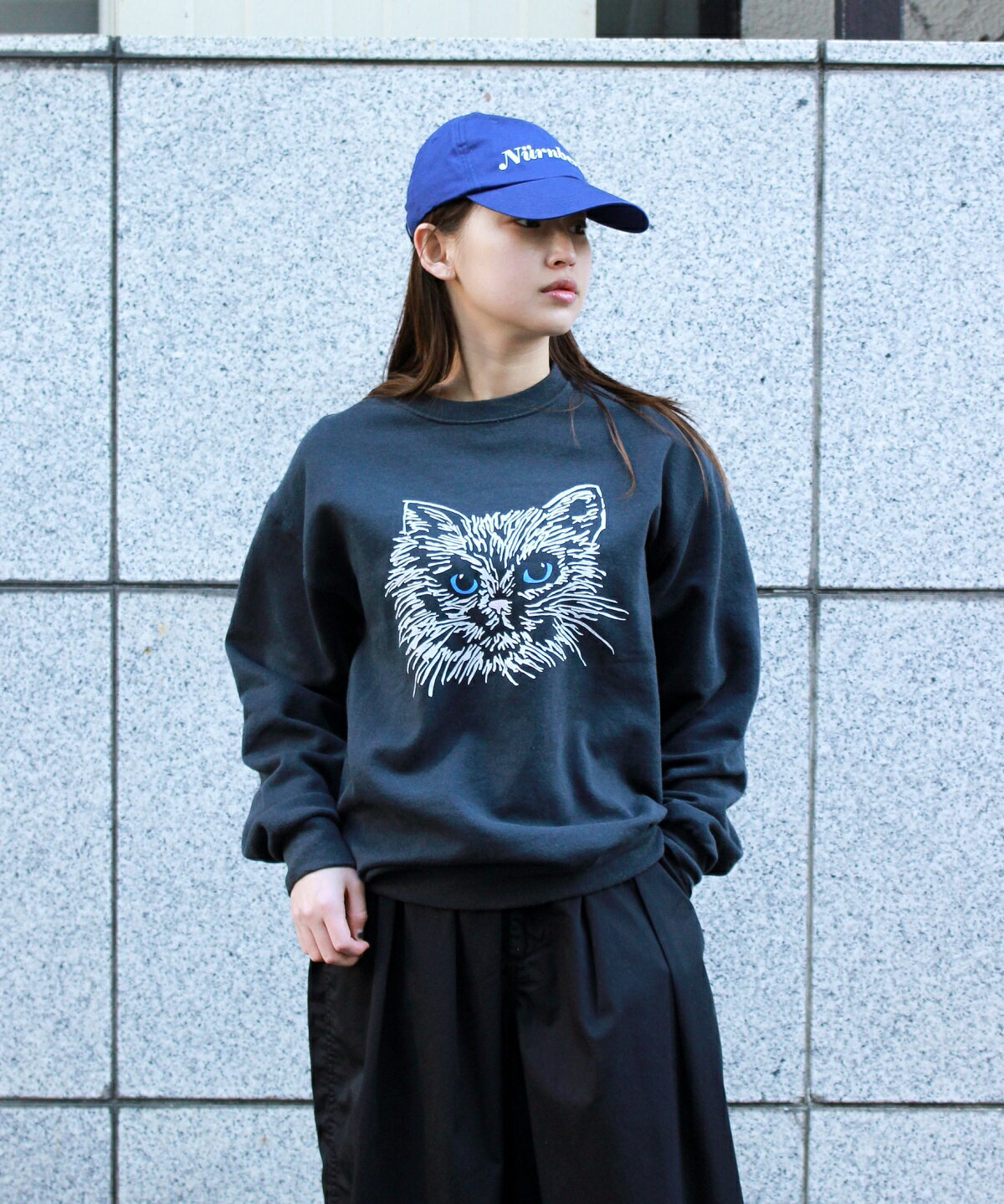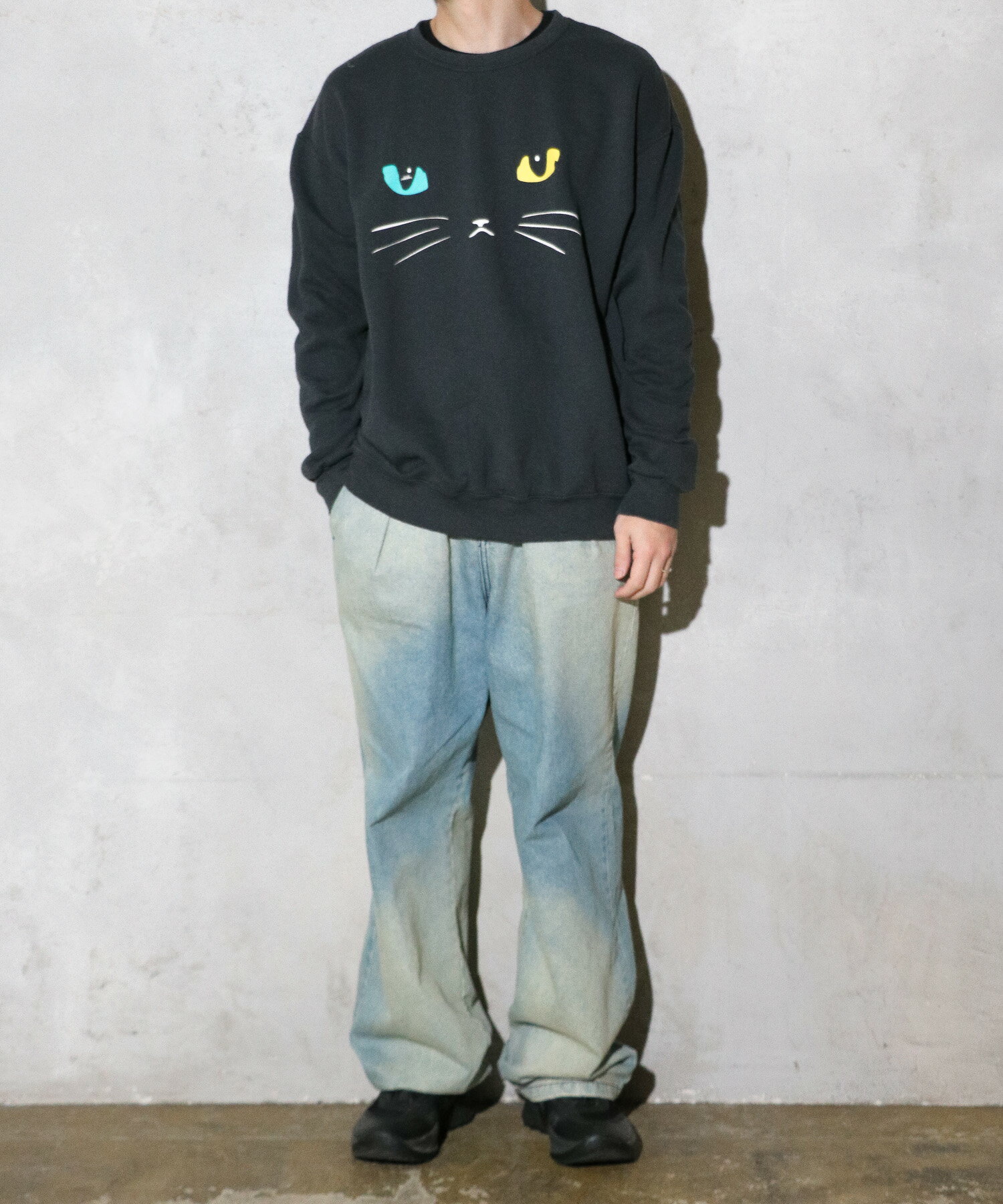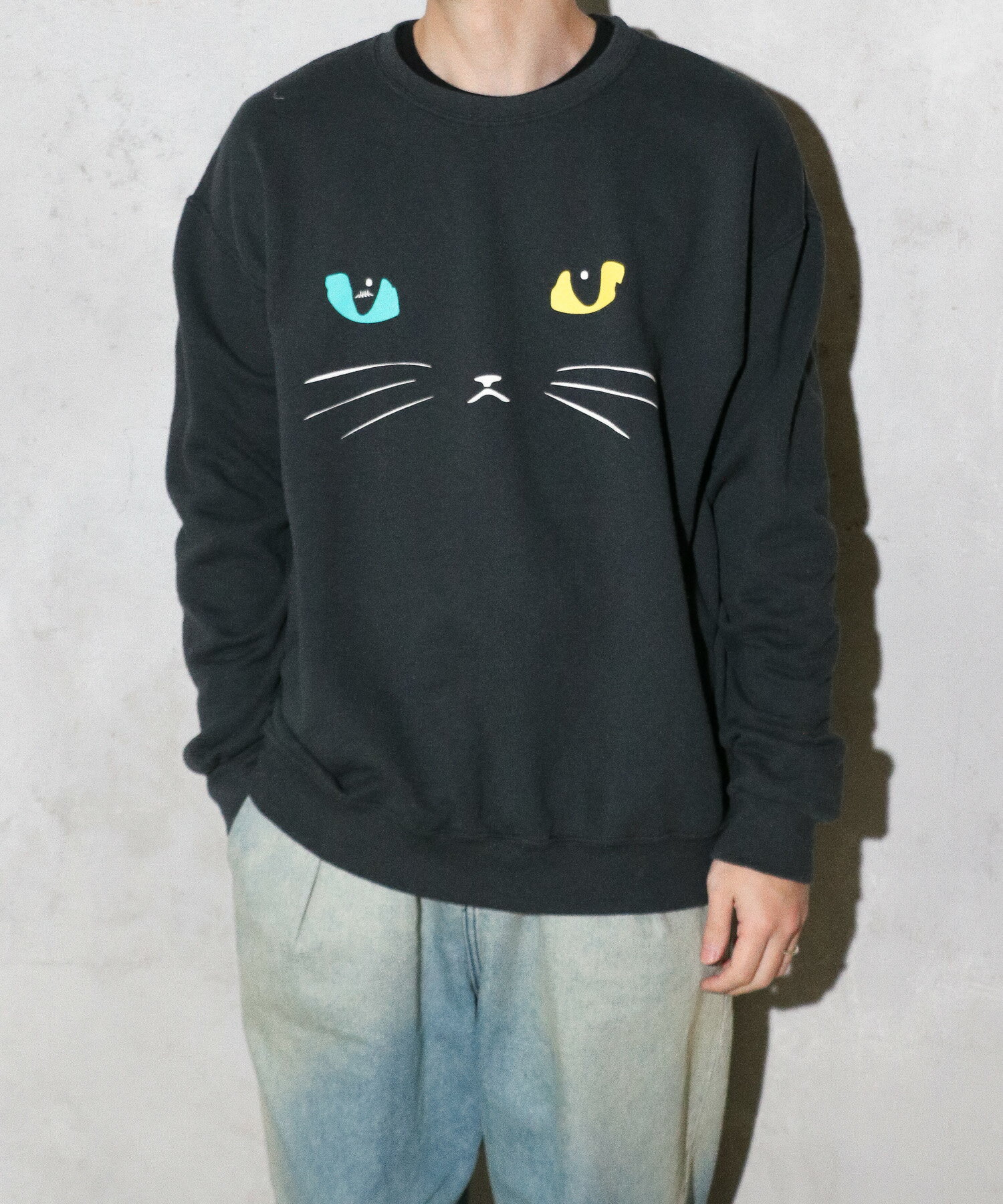 【JERZEES / ジャージーズ】JERZEES /BLACK CATS SWEAT コットン・ポリエステル混 ユーズド加工 キャット 猫 オッドアイ アビイ・ロード プリント 裏起毛 スウェット