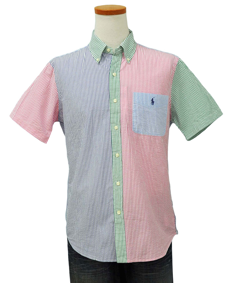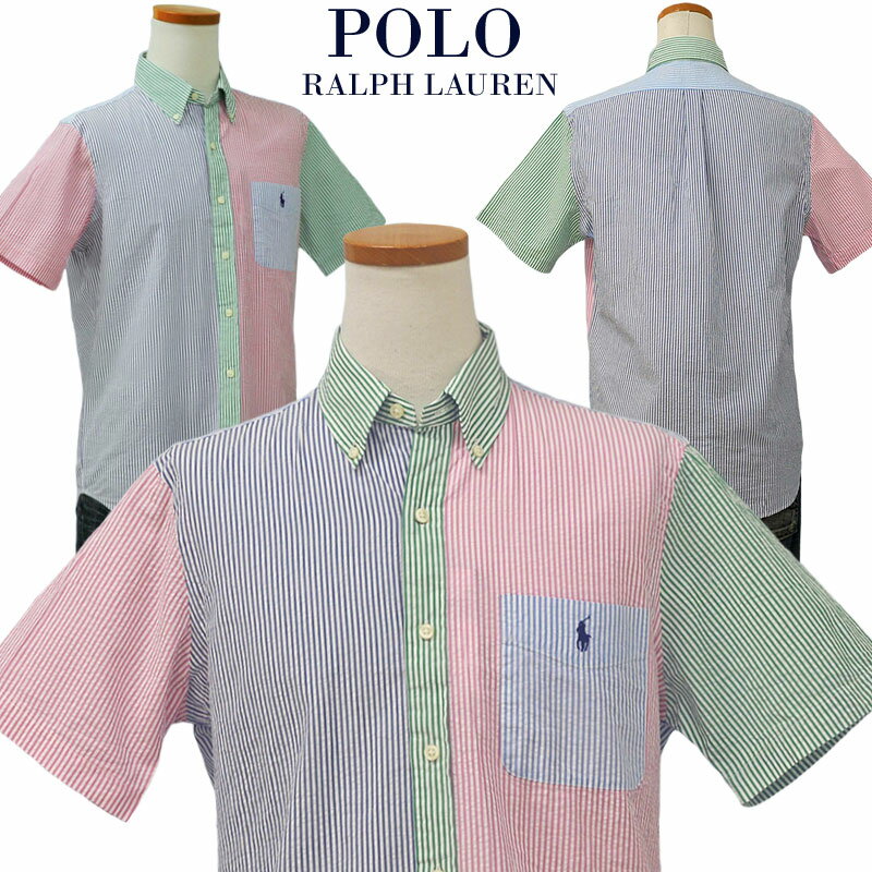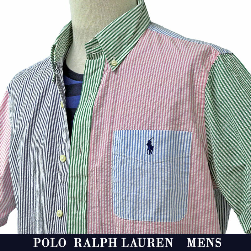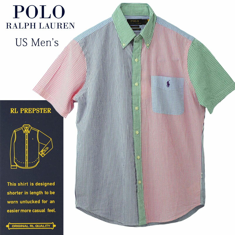 POLO Ralph Lauren Men'sストライプ サッカー生地 ポケット付き半袖シャツXL,大きいサイズ【送料無料】父の日ギフト プレゼント