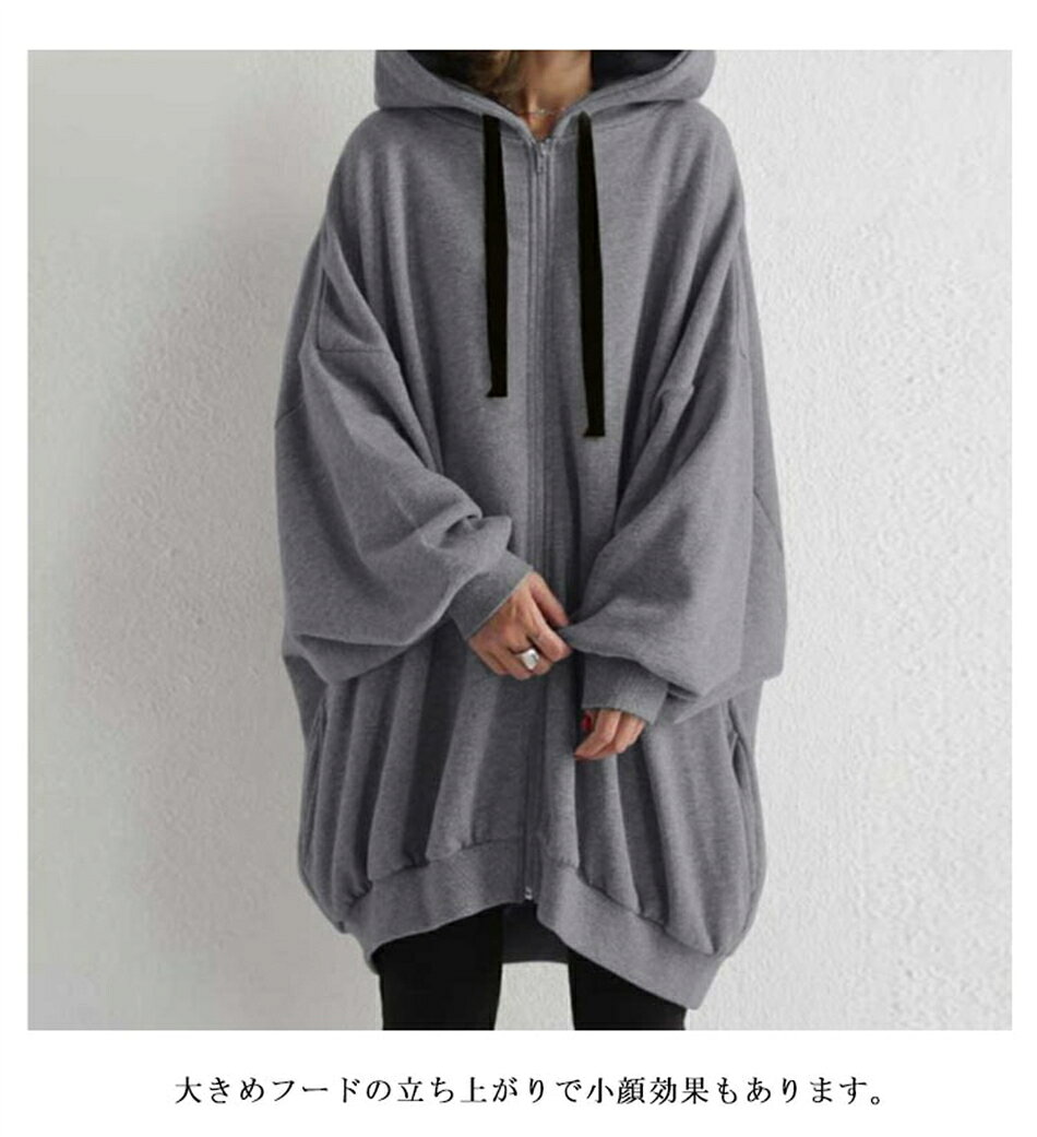 ビッグシルエット パーカー レディース 裏起毛 ロングパーカー 前開き ジップアップパーカー オーバーサイズ あったか ロング丈 長袖 秋 冬 ワンマイルウェア ルームウェア 部屋着 S M L XL 2XL 3XL 4XL 5XL パーカー 裏起毛 レ