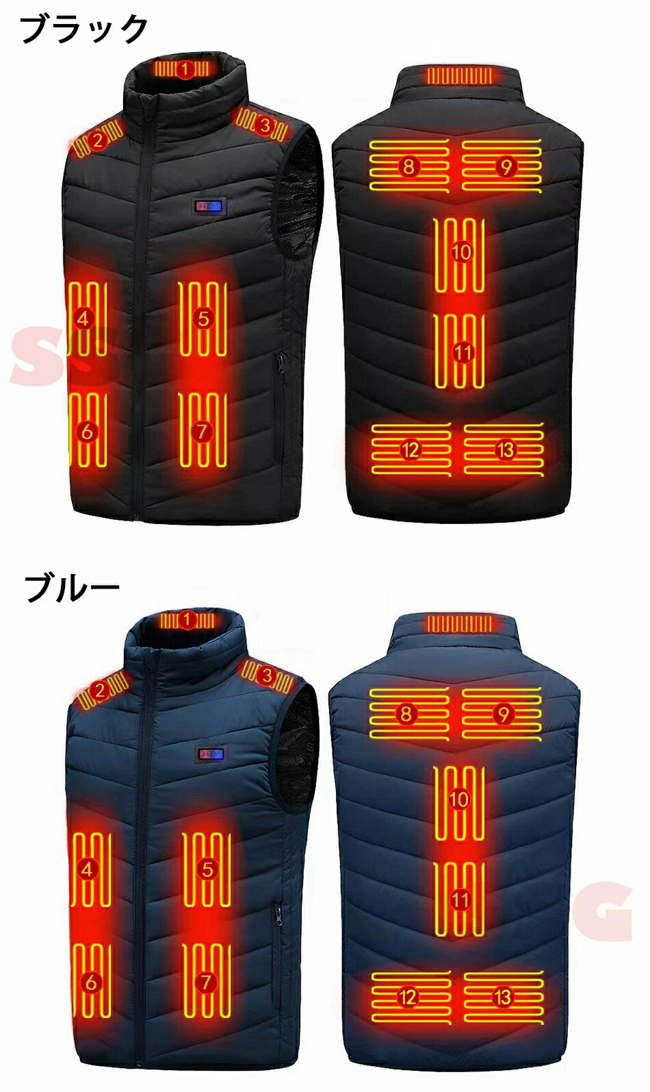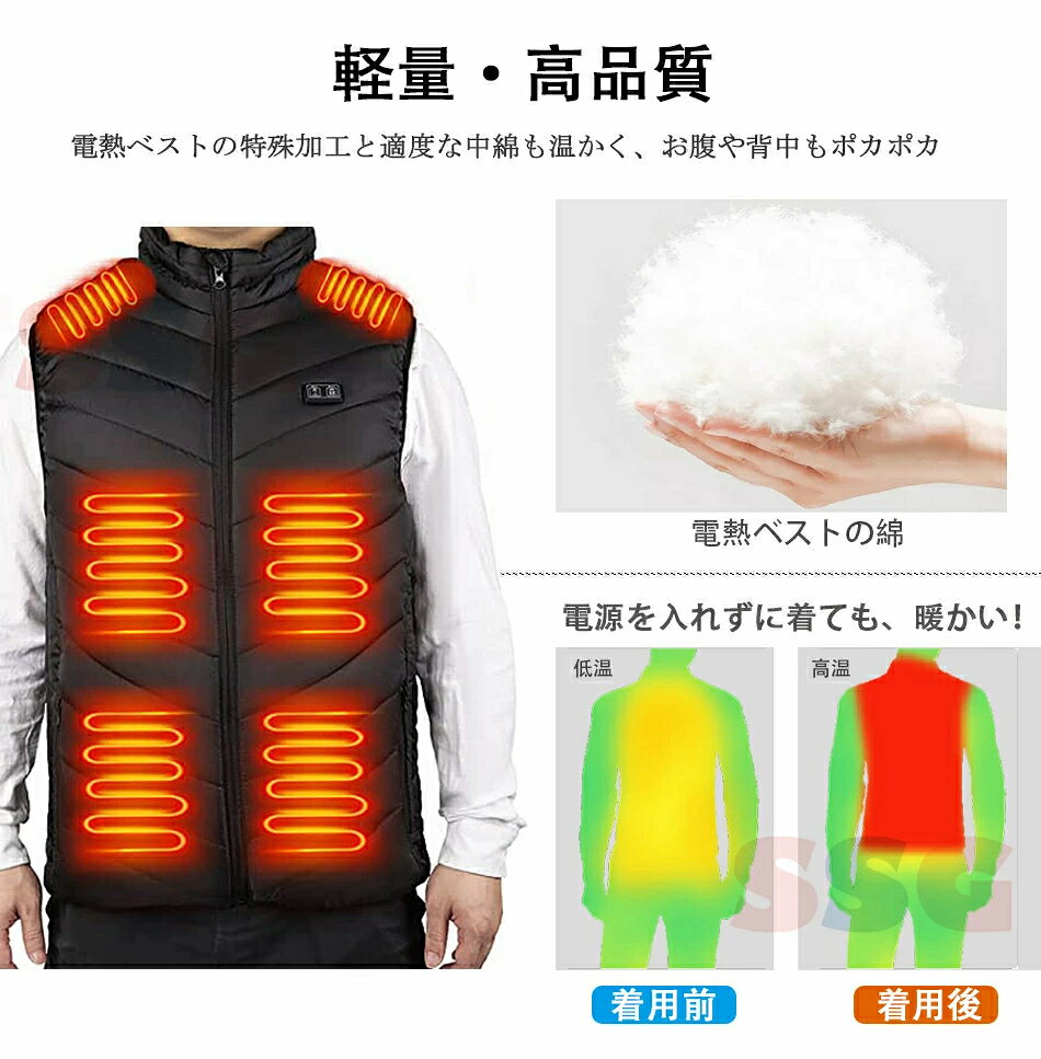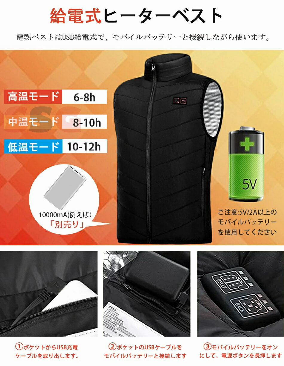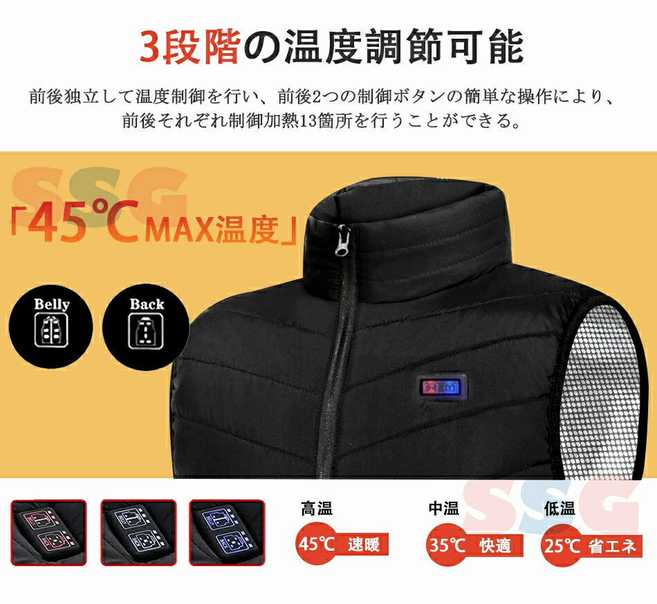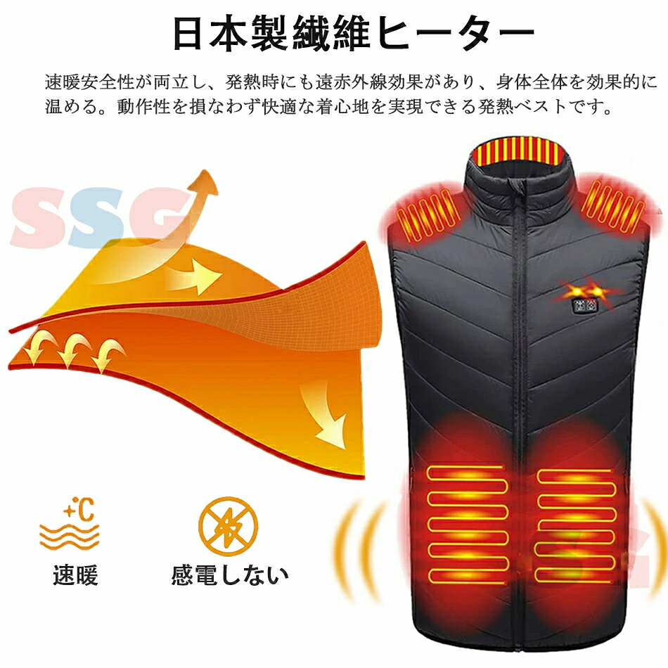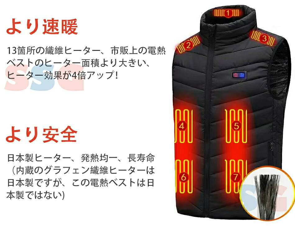 当日発送 電熱ベスト 13枚ヒーター日本製繊維ヒーター ヒーターPSE認証 5秒速暖 Max 65℃ 加熱ベスト 電熱ジャケット ベスト 3段階調温 ヒーターベスト 電熱ベスト usb 電気ベスト 電熱ウェア電熱インナー電熱ベストヒーターベスト インナー 男女兼用 薄手 洗濯可 防寒ベスト