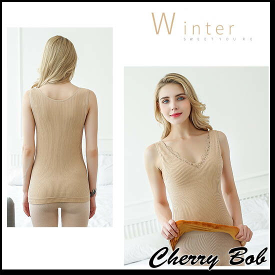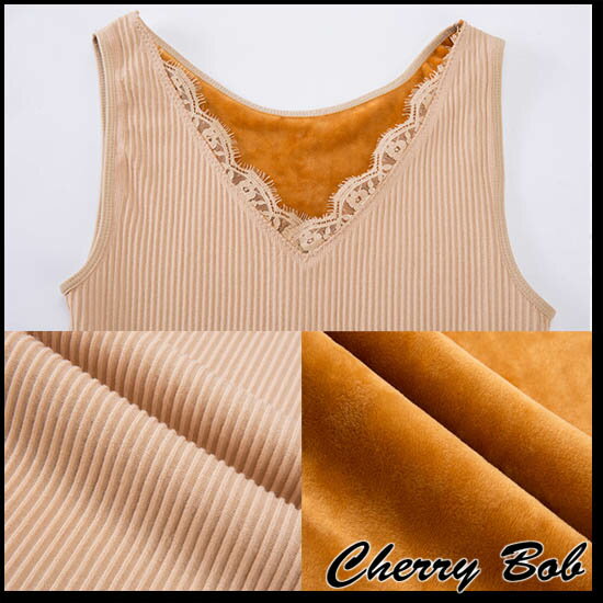 裏起毛 あったかインナー Vネック キャミソール ノースリーブ 厚手ボア 防寒 肌着 ストレッチ レースインナー 全3色