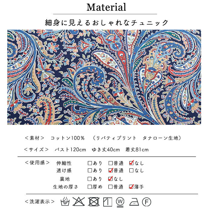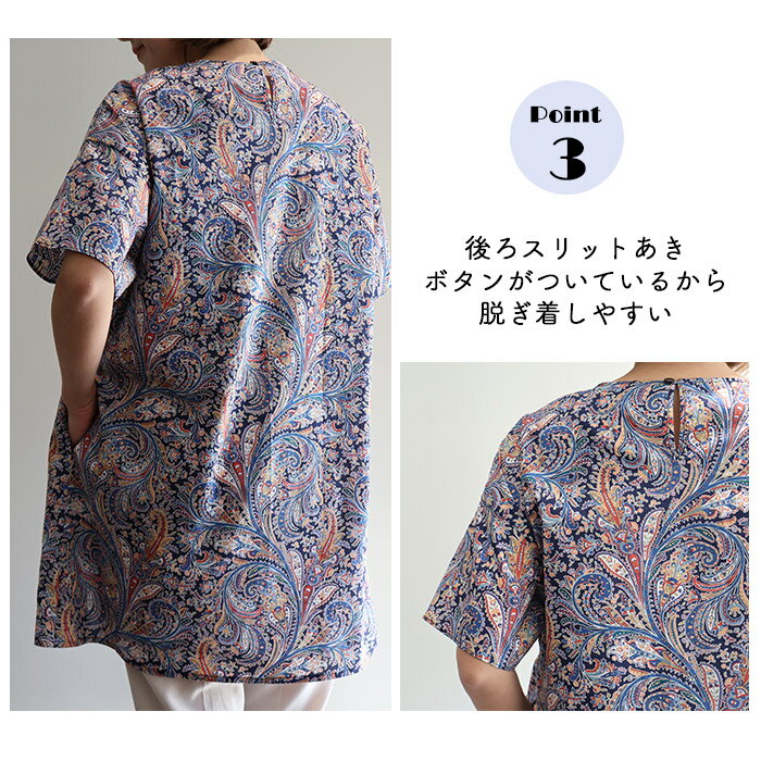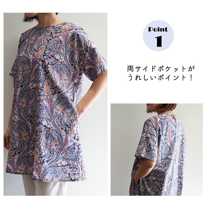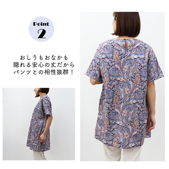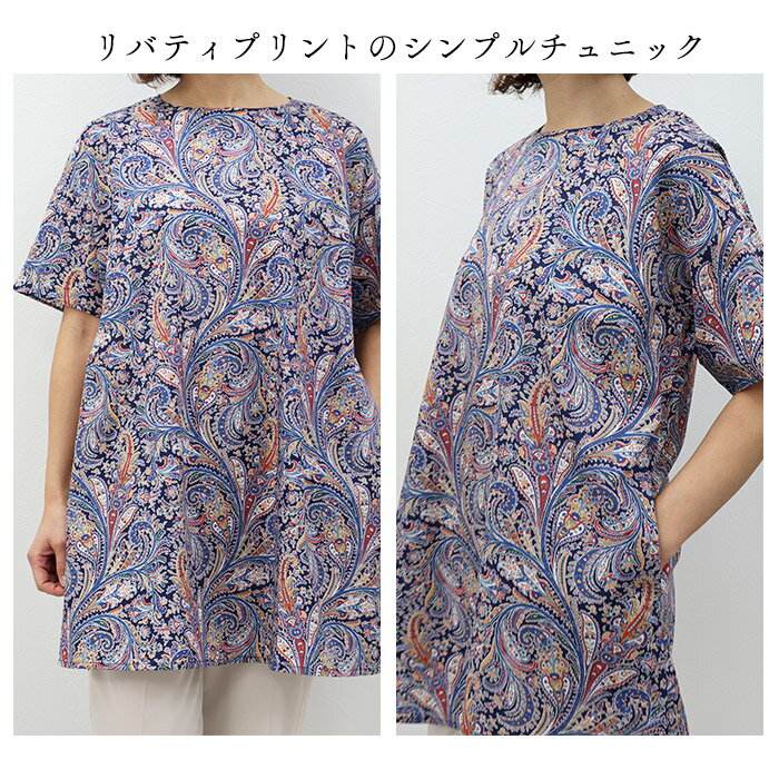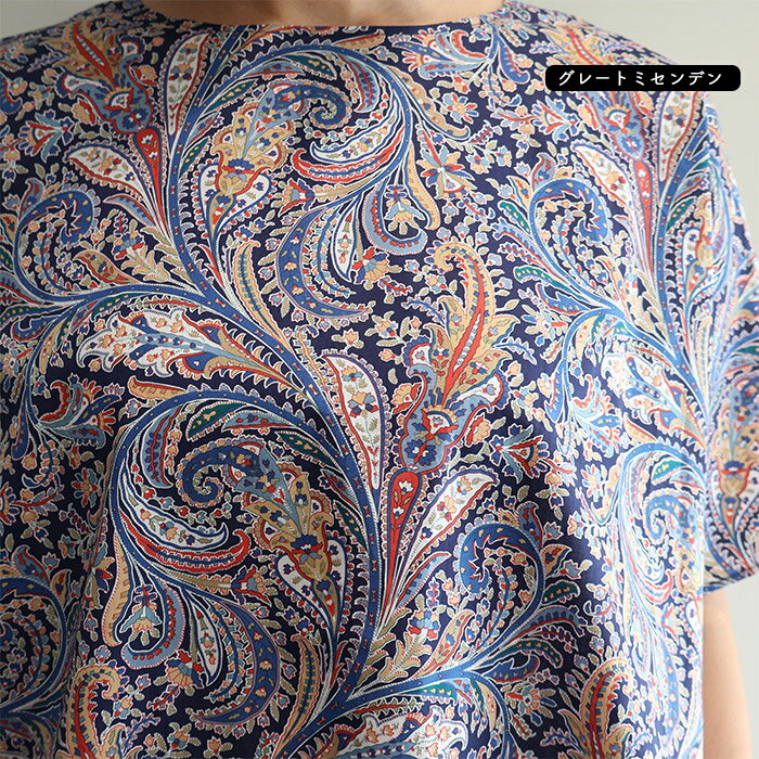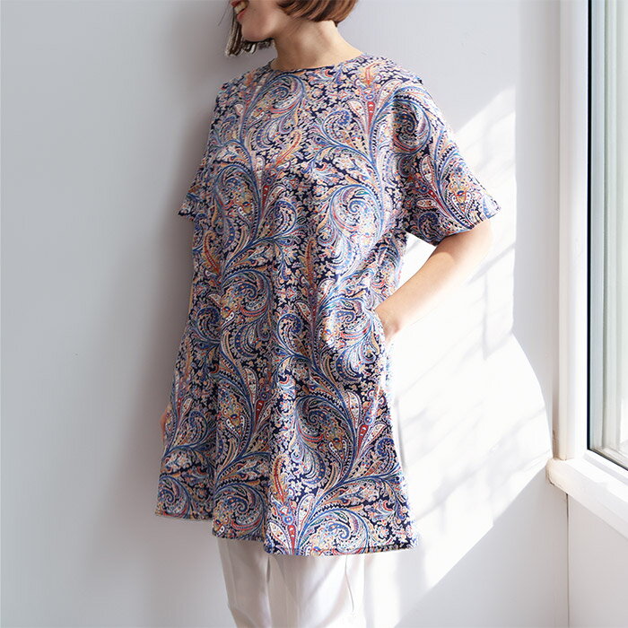リバティ 半袖チュニック(グレートミセンデン)ペイズリー Lサイズ ブラウス チュニック 体型カバー リラックス ポケット付 母の日 プレゼント 国産