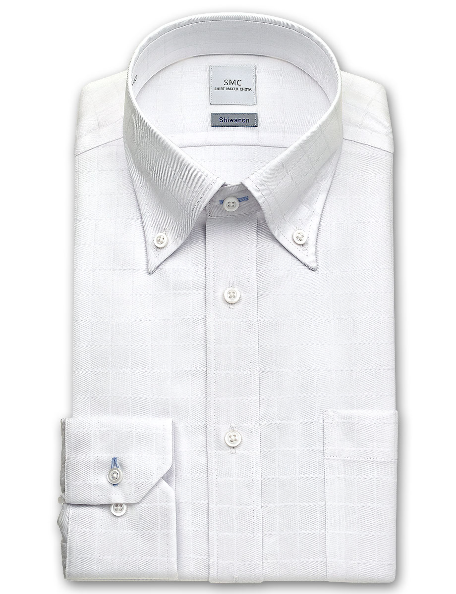 Yシャツ Shiwanon 長袖 ワイシャツ メンズ 形態安定 白ドビーチェック ボタンダウンシャツお手入れ簡単 綿:50% ポリエステル:50% ホワイト SHIRT MAKER CHOYA(cmd340-200) 就活 冠婚葬祭 2406CL