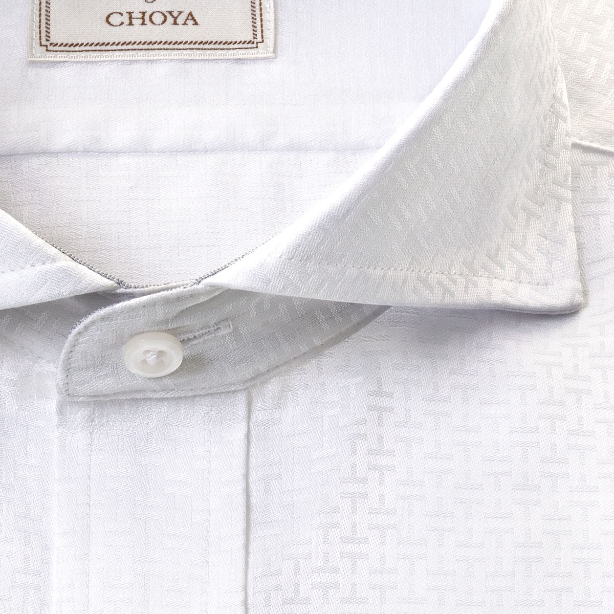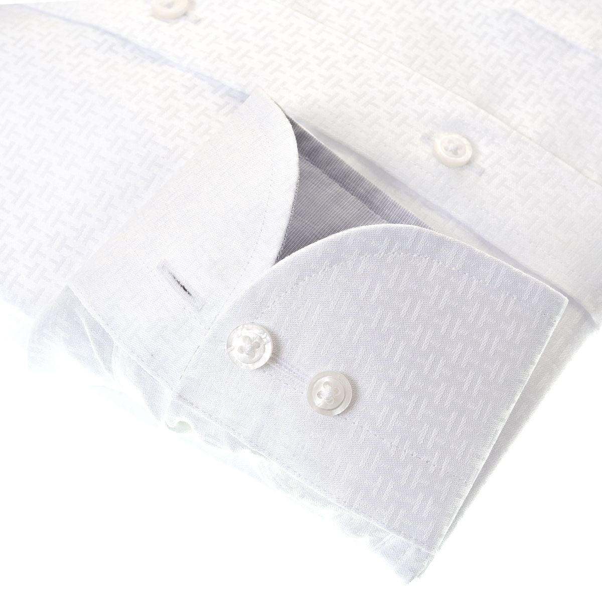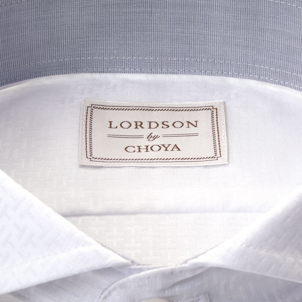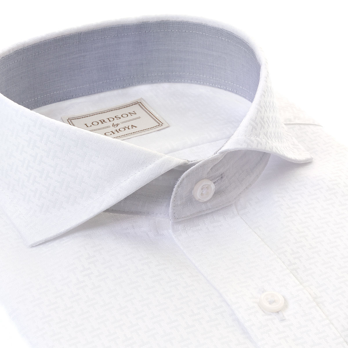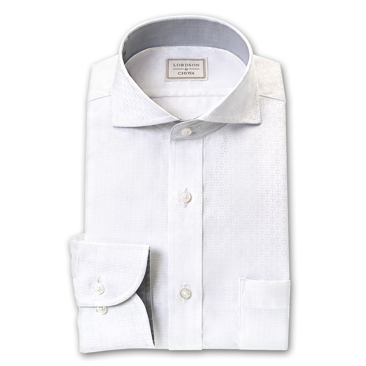 ワイシャツ メンズ 長袖 LORDSON 形態安定 白 ホワイト ジャガード織柄 幾何柄模様 ゲオメトリック カッタウェイワイドカラー 綿100% LORDSON(cod708-200) (sa1)