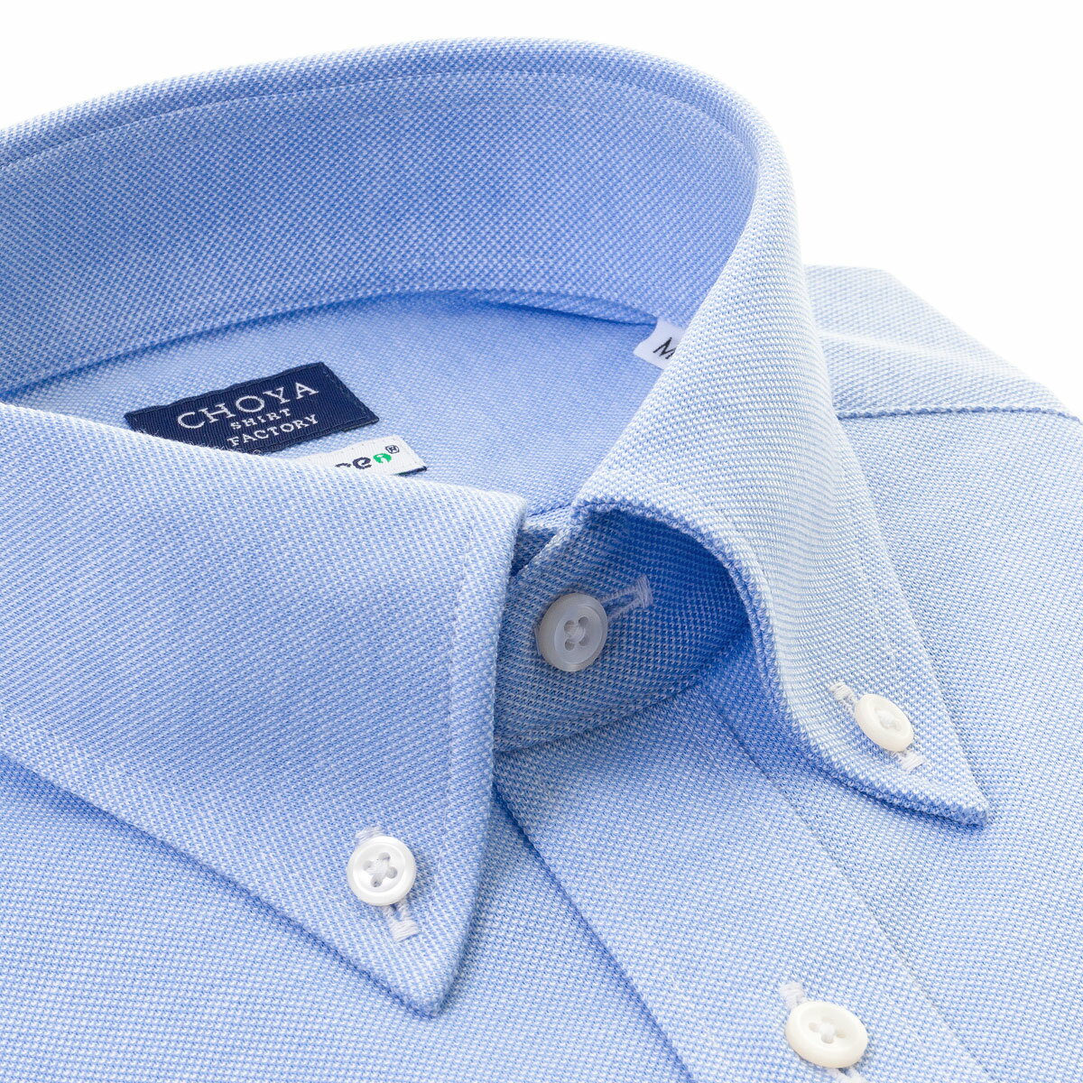 CHOYA SHIRT FACTORY ノンケア ニット 鹿の子ニット 長袖 ニットシャツ ワイシャツ 高機能形態安定加工 ボタンダウン ブルー 青 綿:100%【review】 2408ft