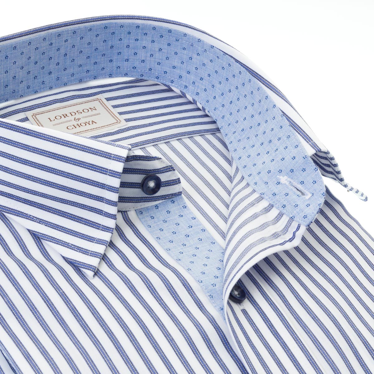 LORDSON Yシャツ 長袖 ワイシャツ メンズ 形態安定 ブルー ストライプ柄 スナップダウンシャツ 綿100% ブルー LORDSON by CHOYA(cod801-450) (sa1)