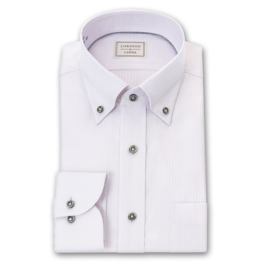 LORDSON Yシャツ 長袖 ワイシャツ メンズ 形態安定 ピンクドビー ショートボタンダウン シャツ 綿100% LORDSON by CHOYA(cod300-210) 2403ft