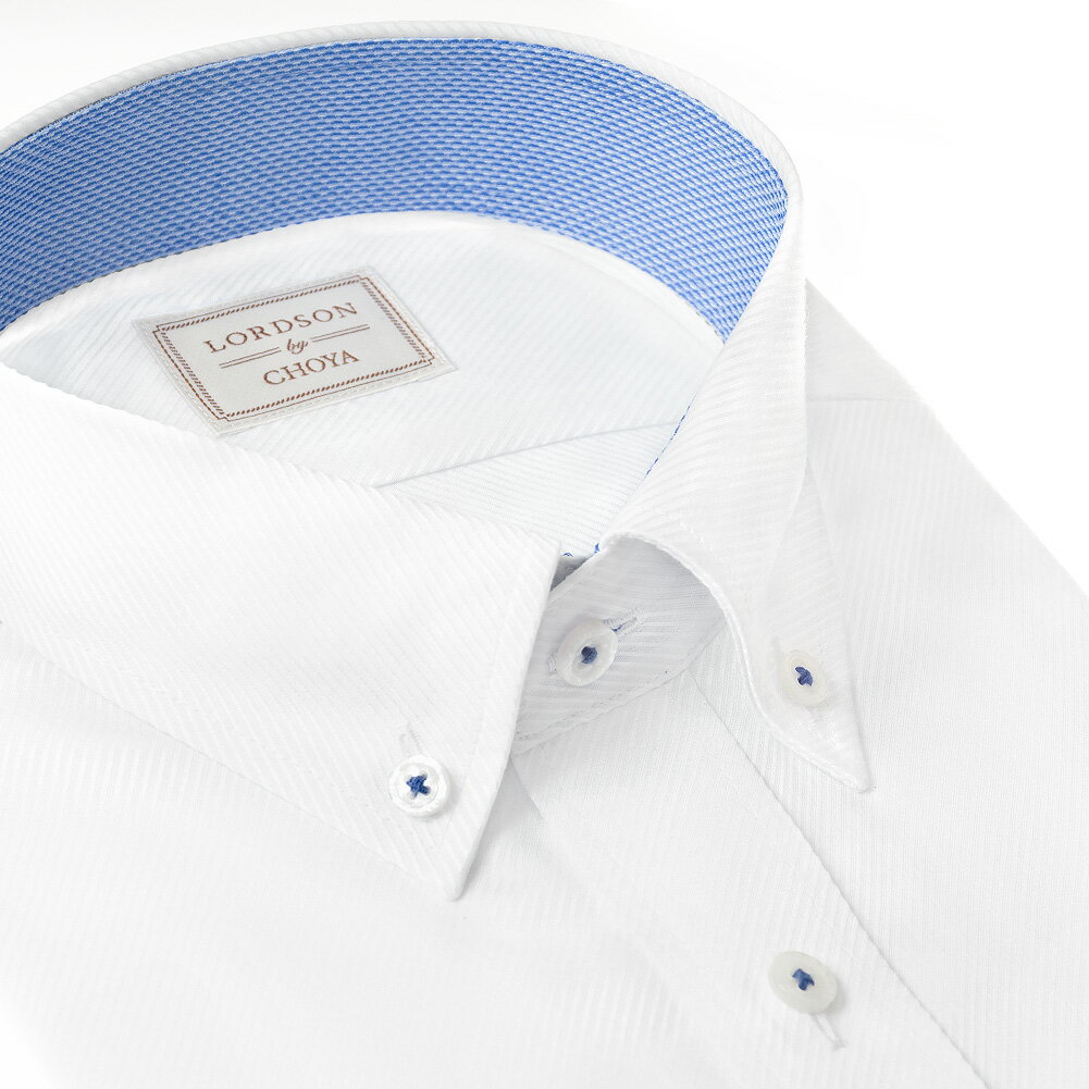 LORDSON by CHOYA 長袖 ワイシャツ メンズ 春夏秋冬 形態安定加工 白ドビー ボタンダウン ショートカラー シャツ|綿:100% ホワイト(cod915-200) 2407FS