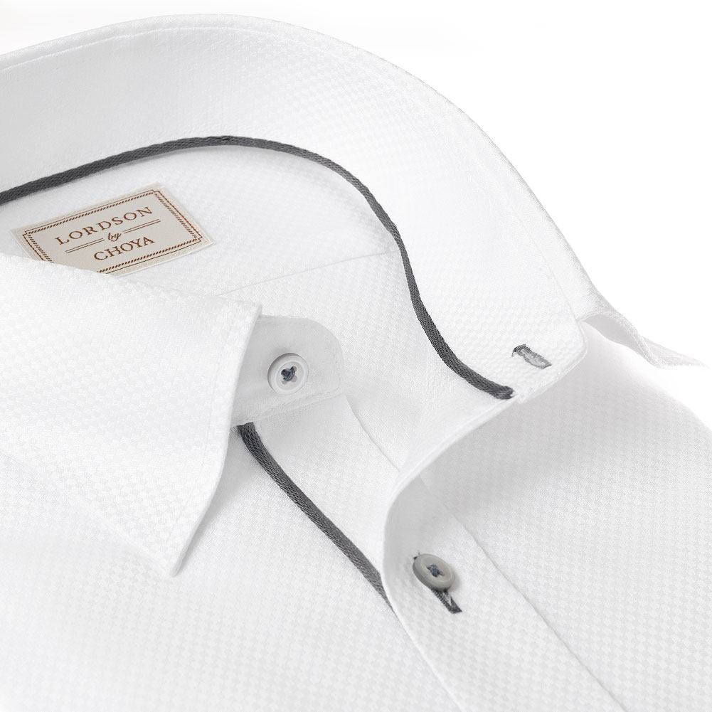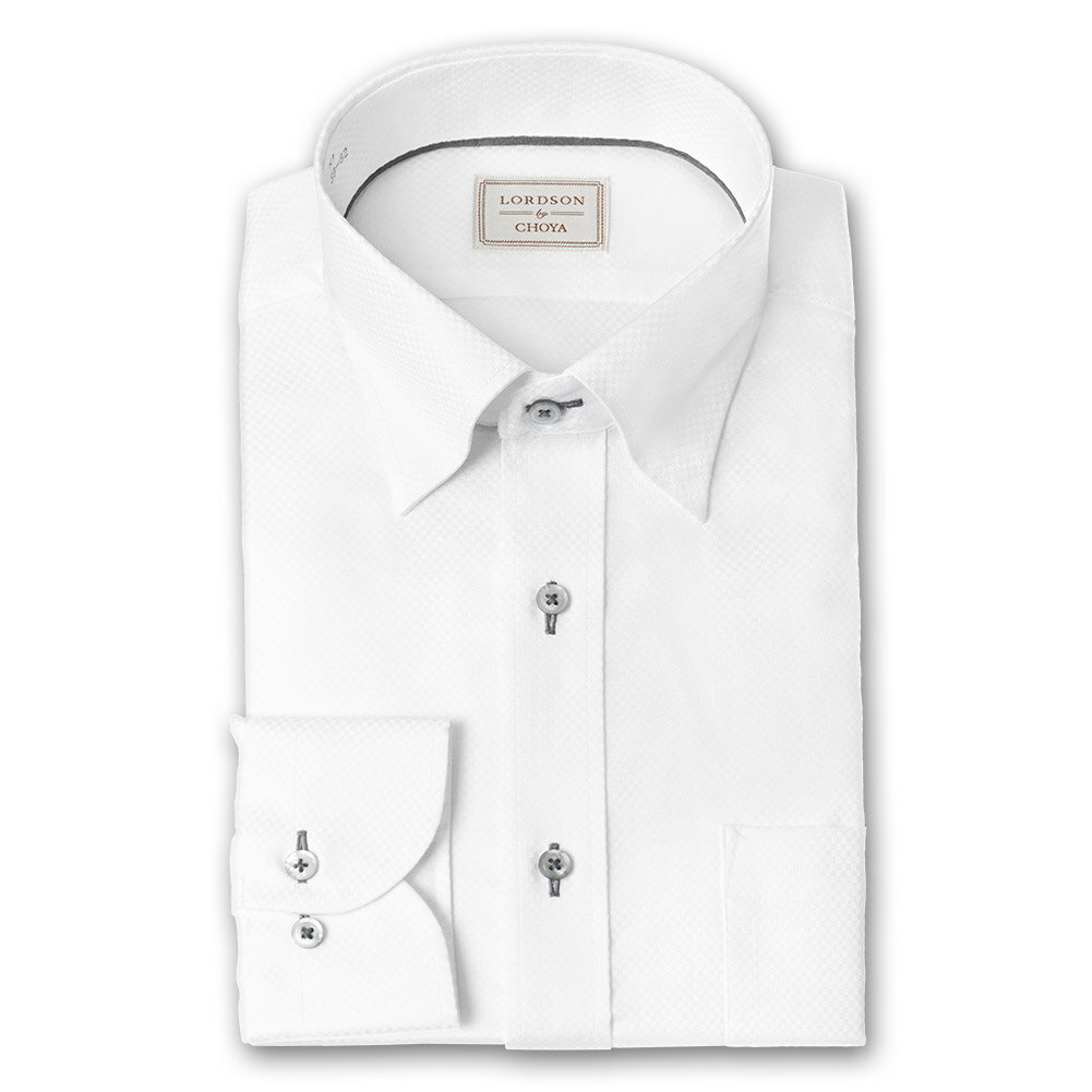 LORDSON by CHOYA 長袖 ワイシャツ メンズ 春夏秋冬 形態安定加工 白ドビー 市松模様 スナップダウン シャツ|綿:100% ホワイト(cod914-200) 2407FS