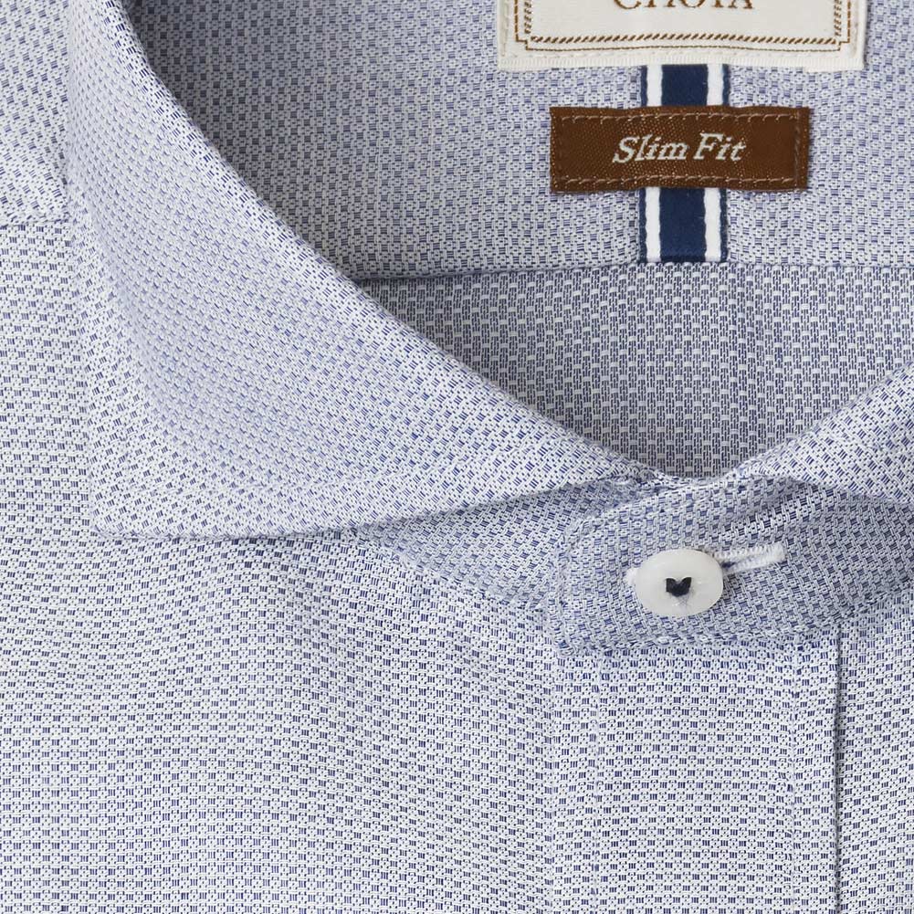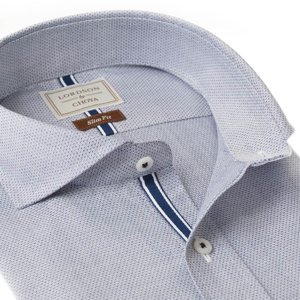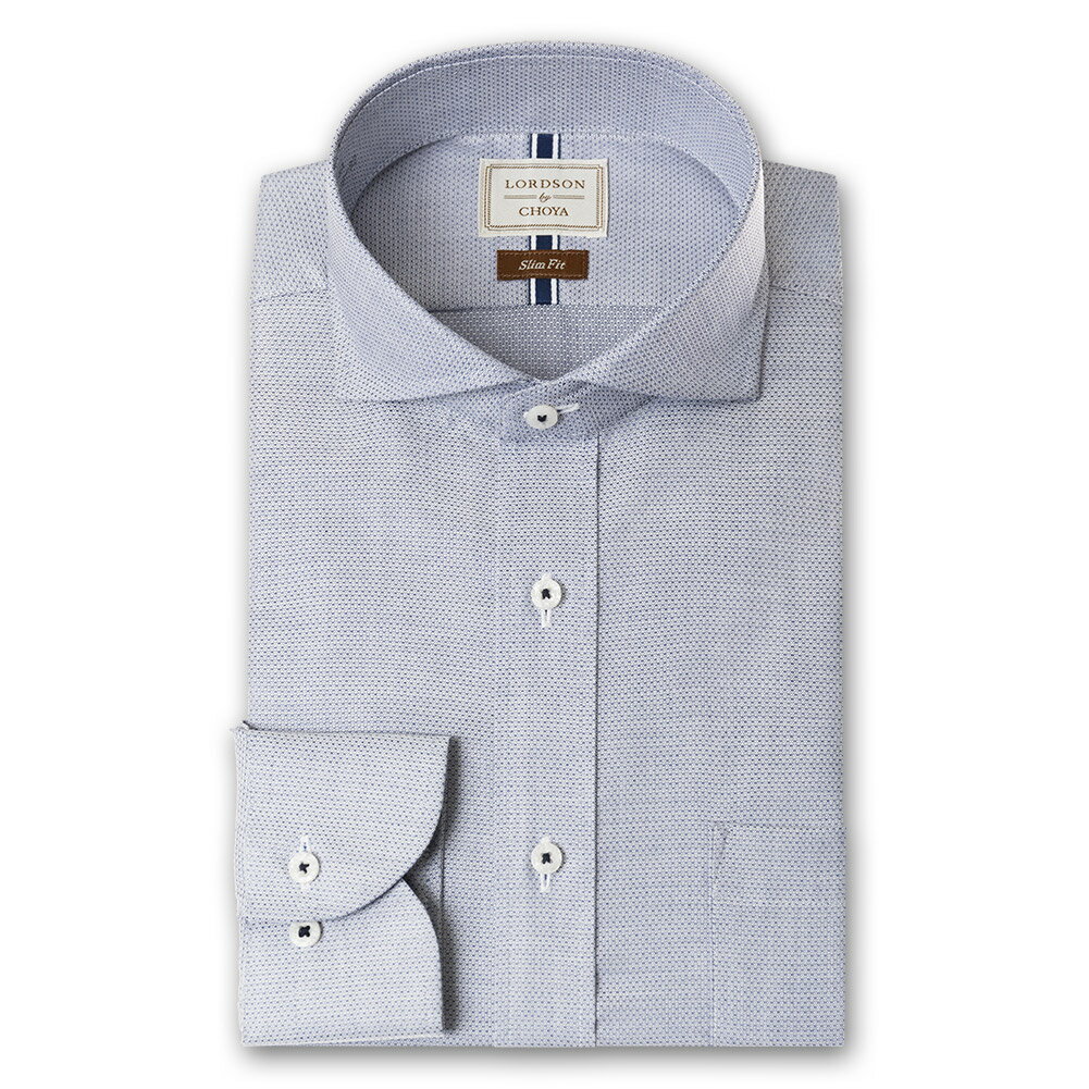 LORDSON by CHOYA Slim Fit 長袖 ワイシャツ メンズ カッタウェイ シャツ 形態安定加工 ネイビードビー 紺色 スリムフィット 綿100%(cod064-255) 2406CL