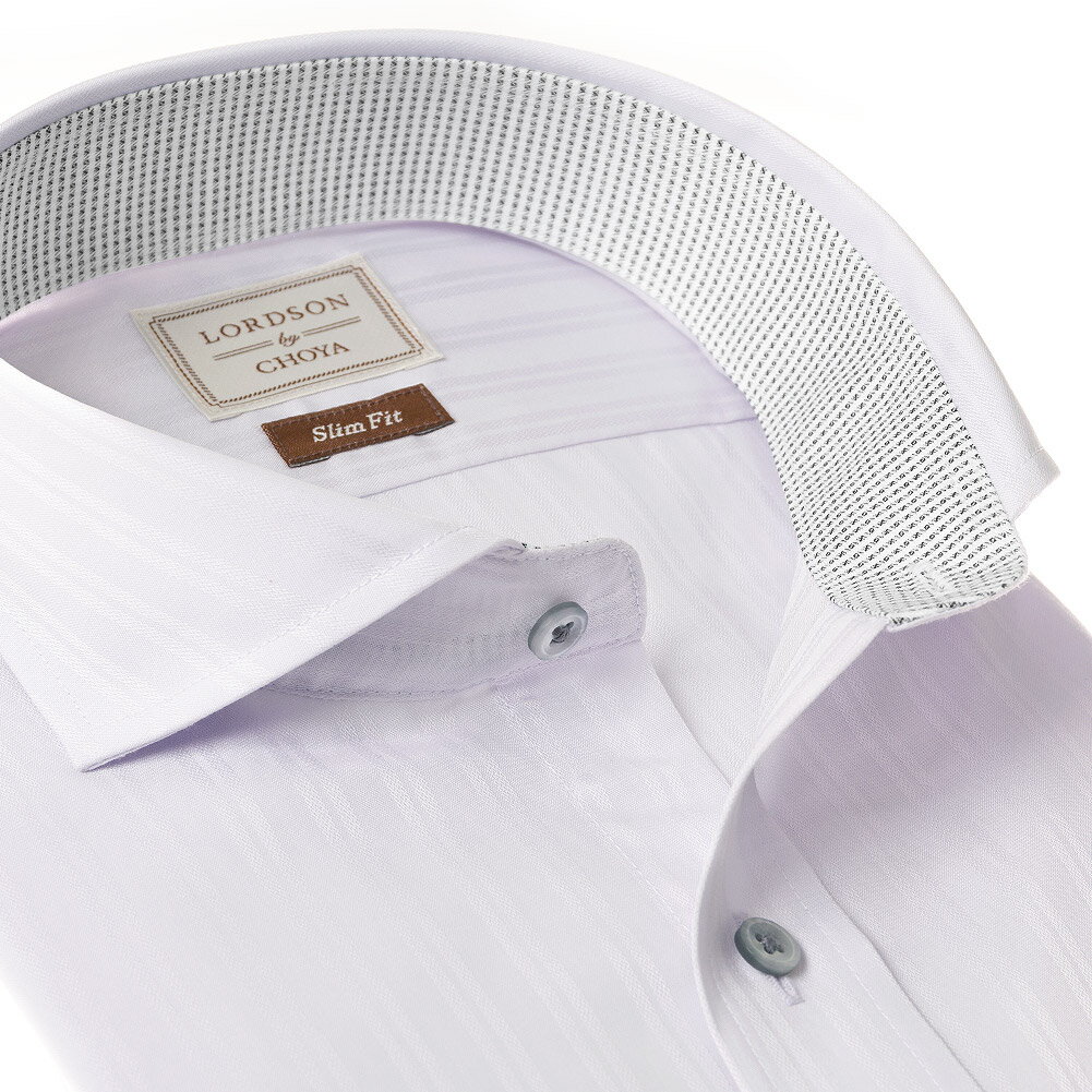 LORDSON by CHOYA Slim Fit 長袖 ワイシャツ メンズ カッタウェイ シャツ 形態安定加工 パープルドビー 紫 スリムフィット 綿100%(cod065-210) 2406CL