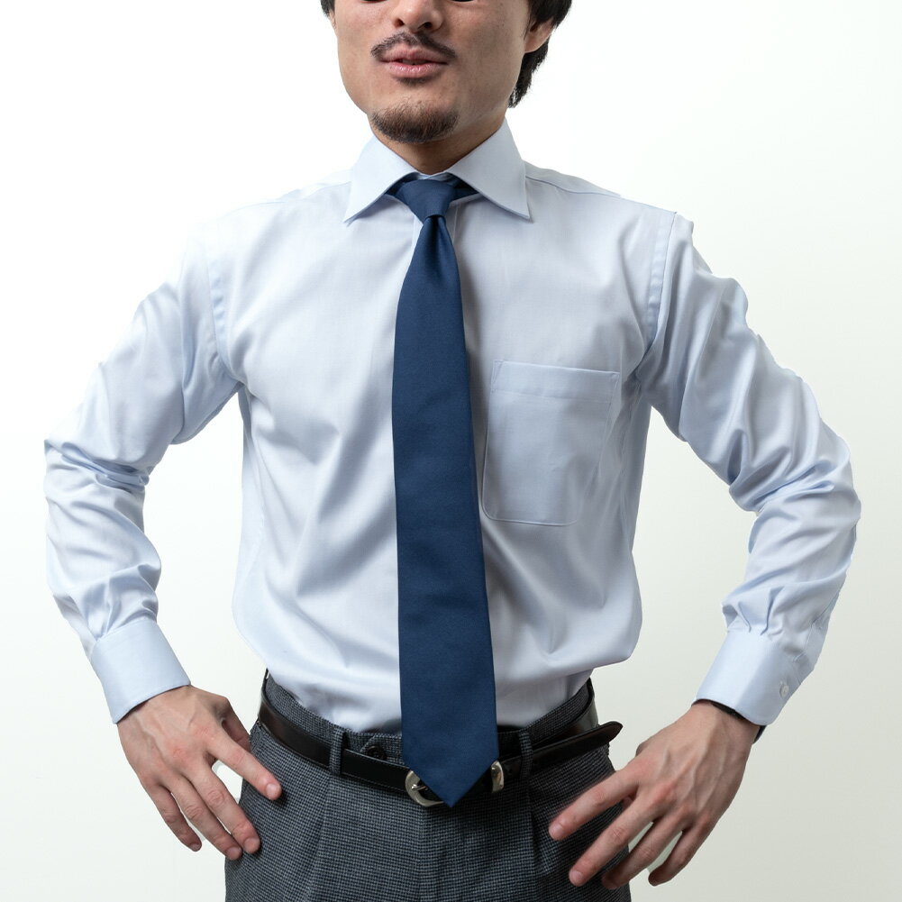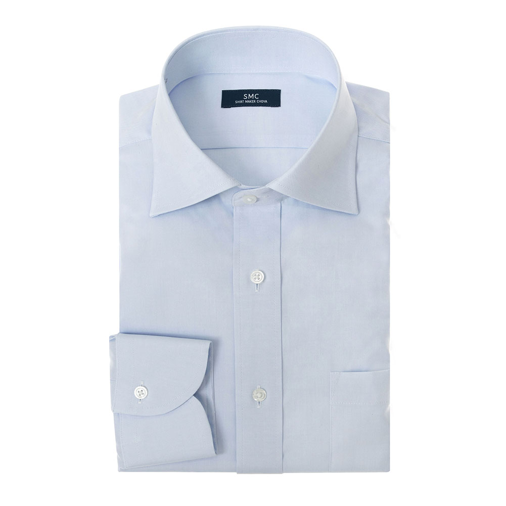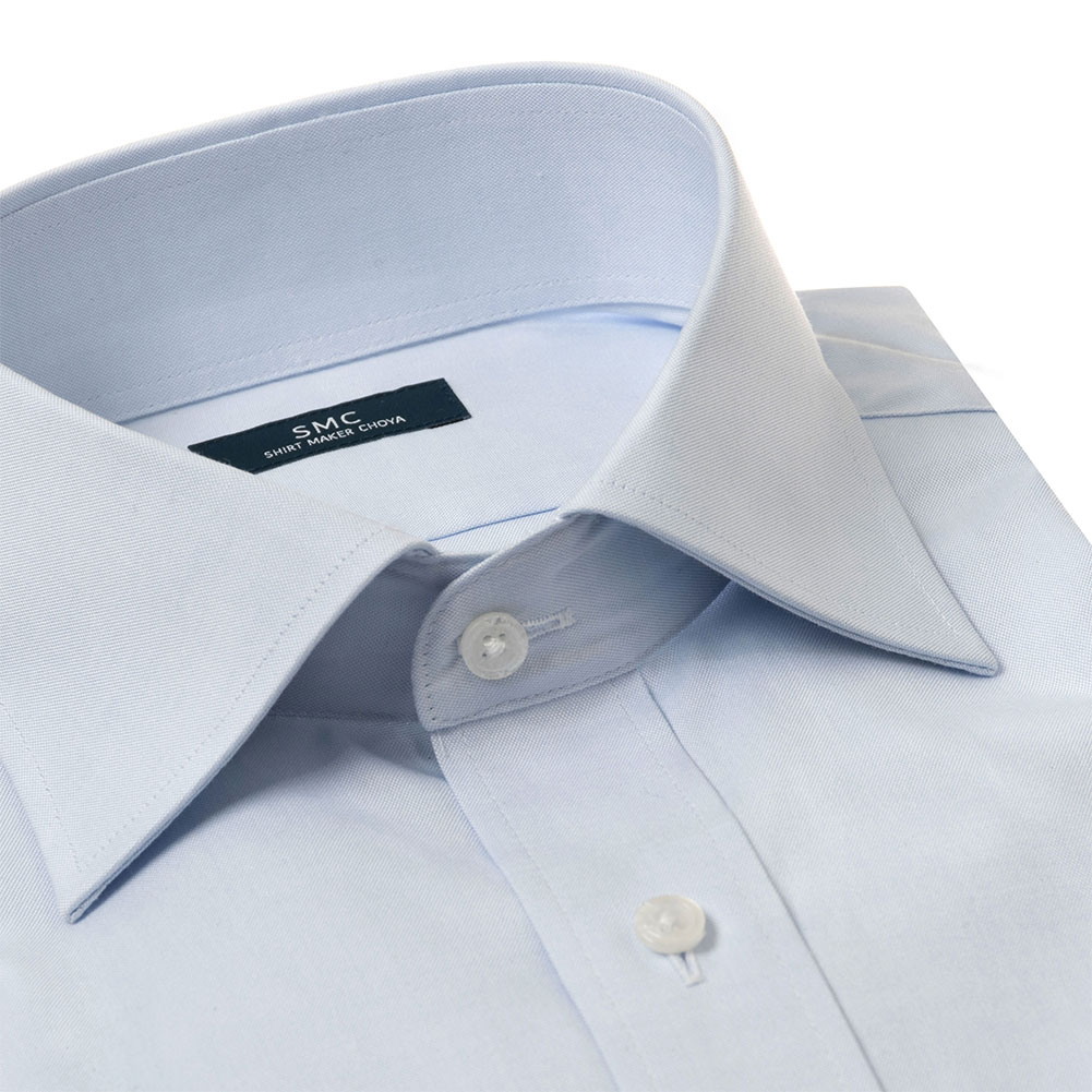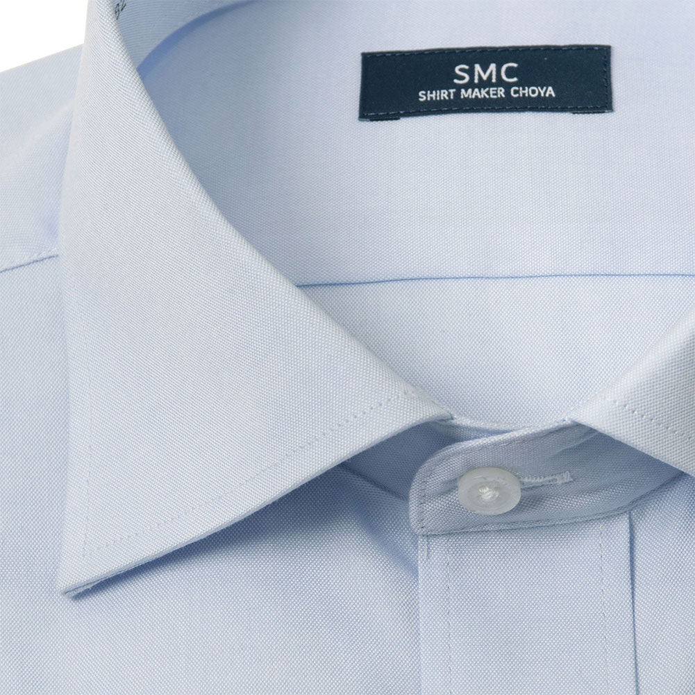 ワイシャツ メンズ 長袖 綿100% 形態安定 ブルー ピンオックス セミワイドカラー SHIRT MAKER CHOYA【review】