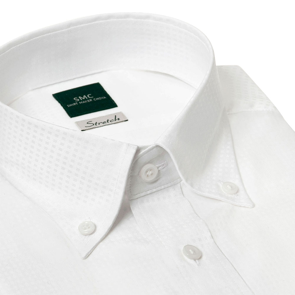 ワイシャツ 長袖 メンズ 形態安定 吸水速乾 ストレッチ 白ドビー ホワイト ボタンダウン SHIRT MAKER CHOYA