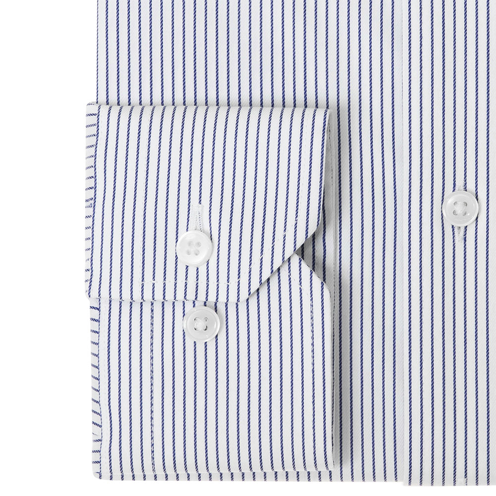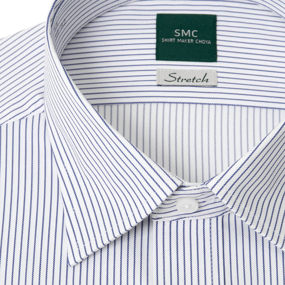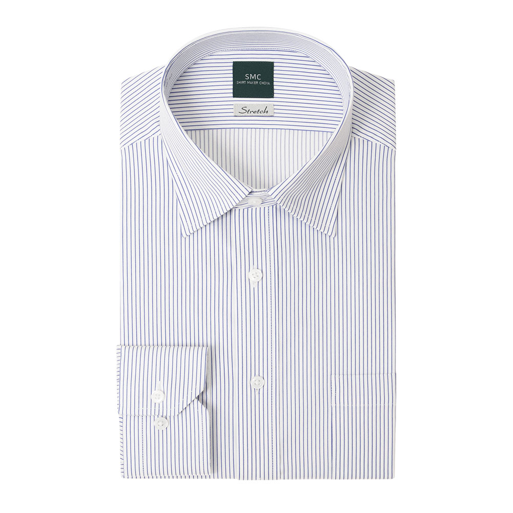 ワイシャツ 長袖 メンズ 形態安定 吸水速乾 ストレッチ ブルー ストライプ レギュラーカラー SHIRT MAKER CHOYA 2403ft