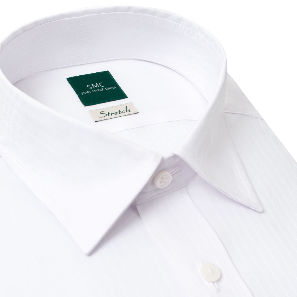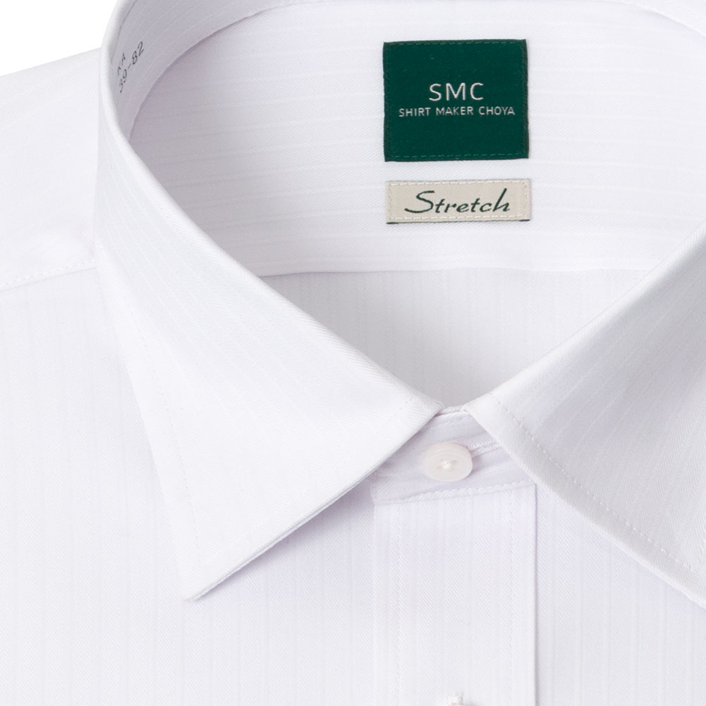 ワイシャツ 長袖 メンズ 形態安定 ストレッチ 白 ホワイト ドビー ストライプ ショートカラー SHIRT MAKER CHOYA 2503de