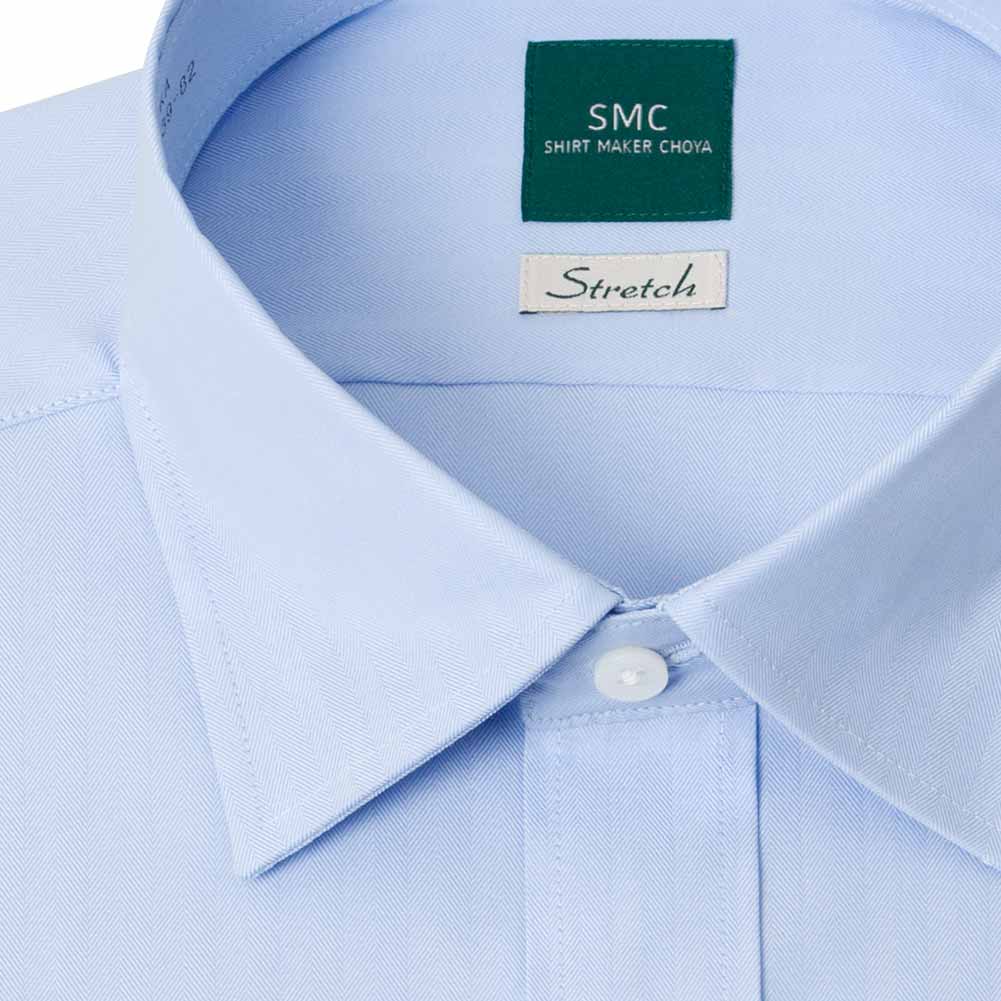ワイシャツ 長袖 メンズ 形態安定 ストレッチ ブルー 青 ドビー ショートカラー SHIRT MAKER CHOYA 2503de