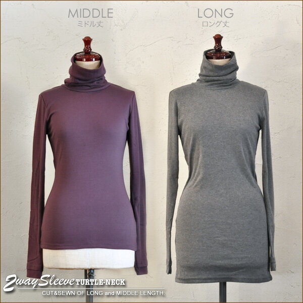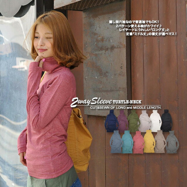 60,770枚突破!着丈が選べる 2WAY隠し指穴付 タートルネック カットソー[ネコポス発送]【送料無料】