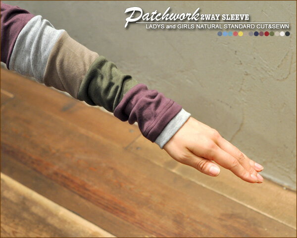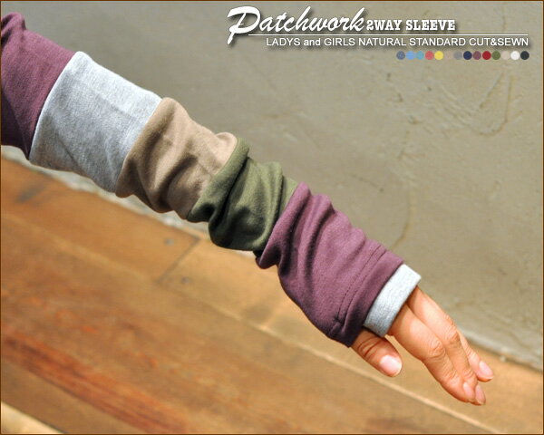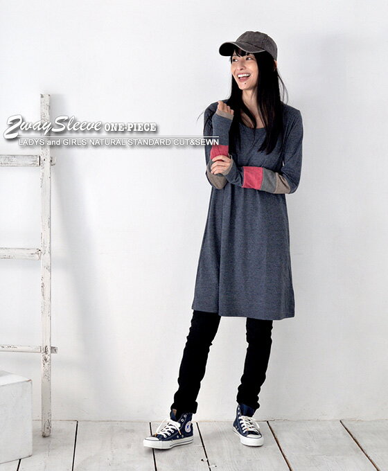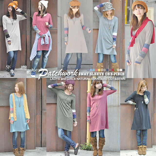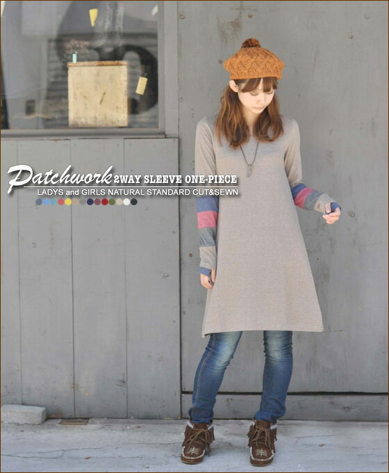 パッチワーク袖切替★2WAY指穴付ワンピース〔M/L/LL〕【送料無料】[ネコポス発送]