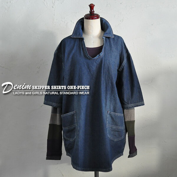 ビンテージデニム★スキッパー7分袖チュニック♪ [ネコポス発送]【送料無料】