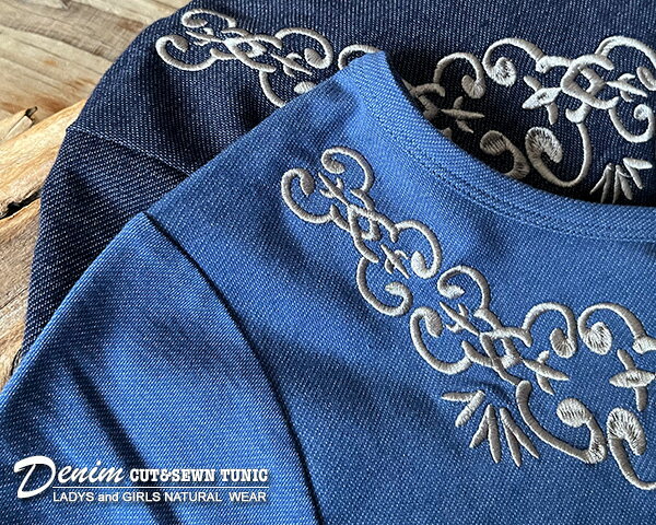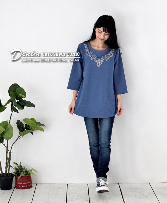 刺繍 カットデニム7分袖チュニック【送料無料】[ネコポス発送]