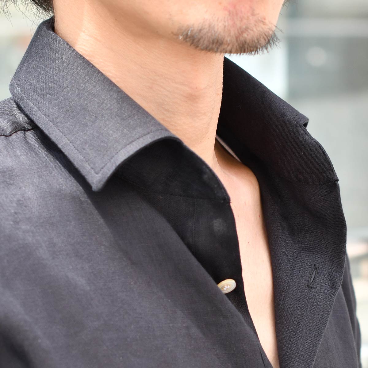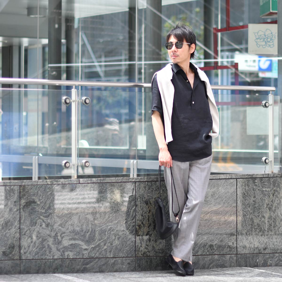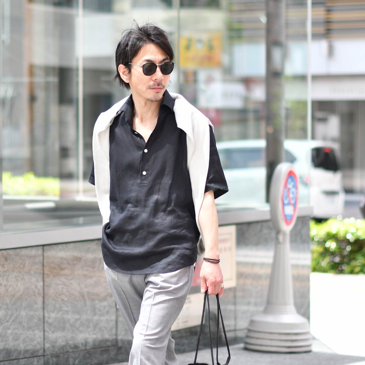 Maria Santangelo【マリアサンタンジェロ】半袖プルオーバーシャツ POLO JP Marcello Hawaii 99 リネン ブラック