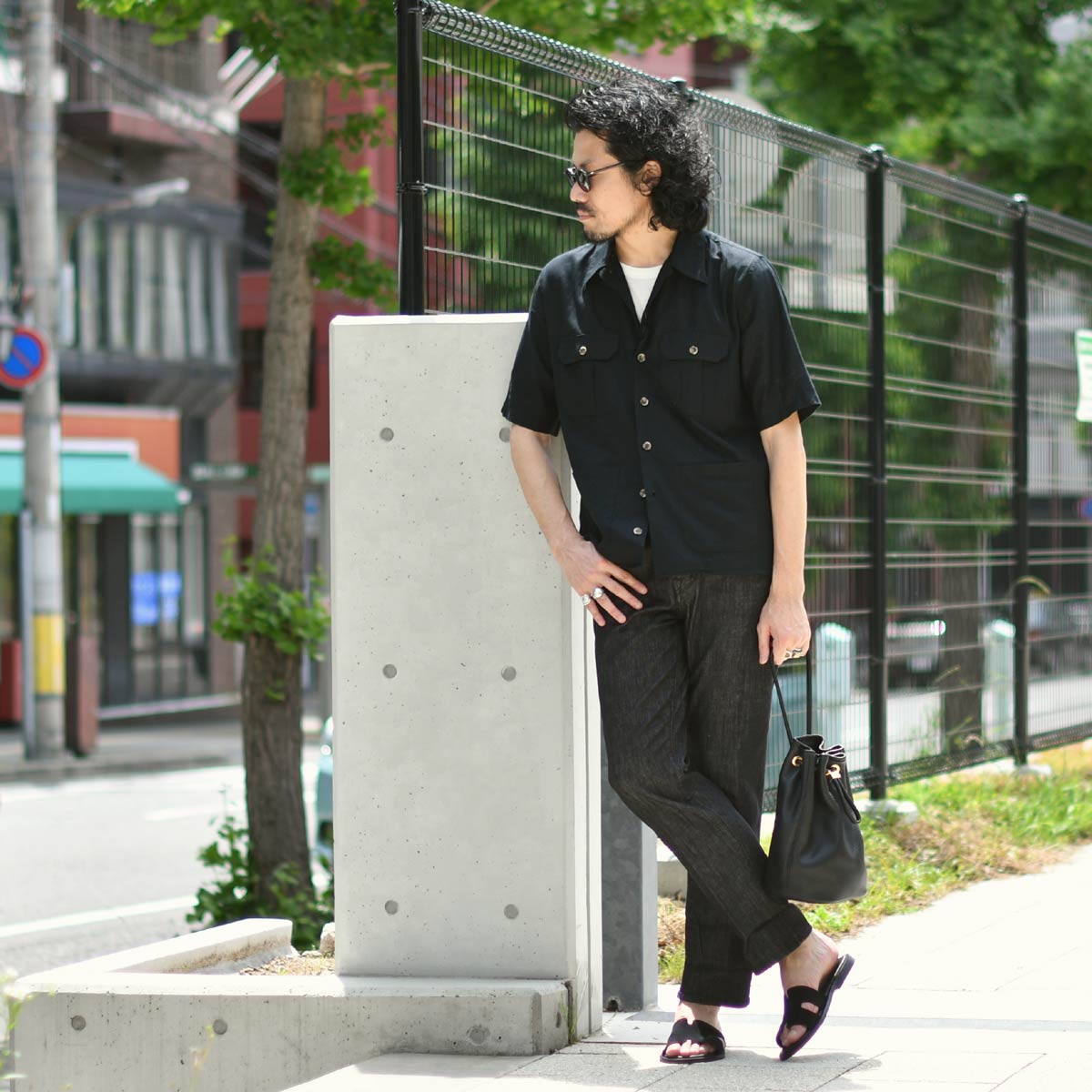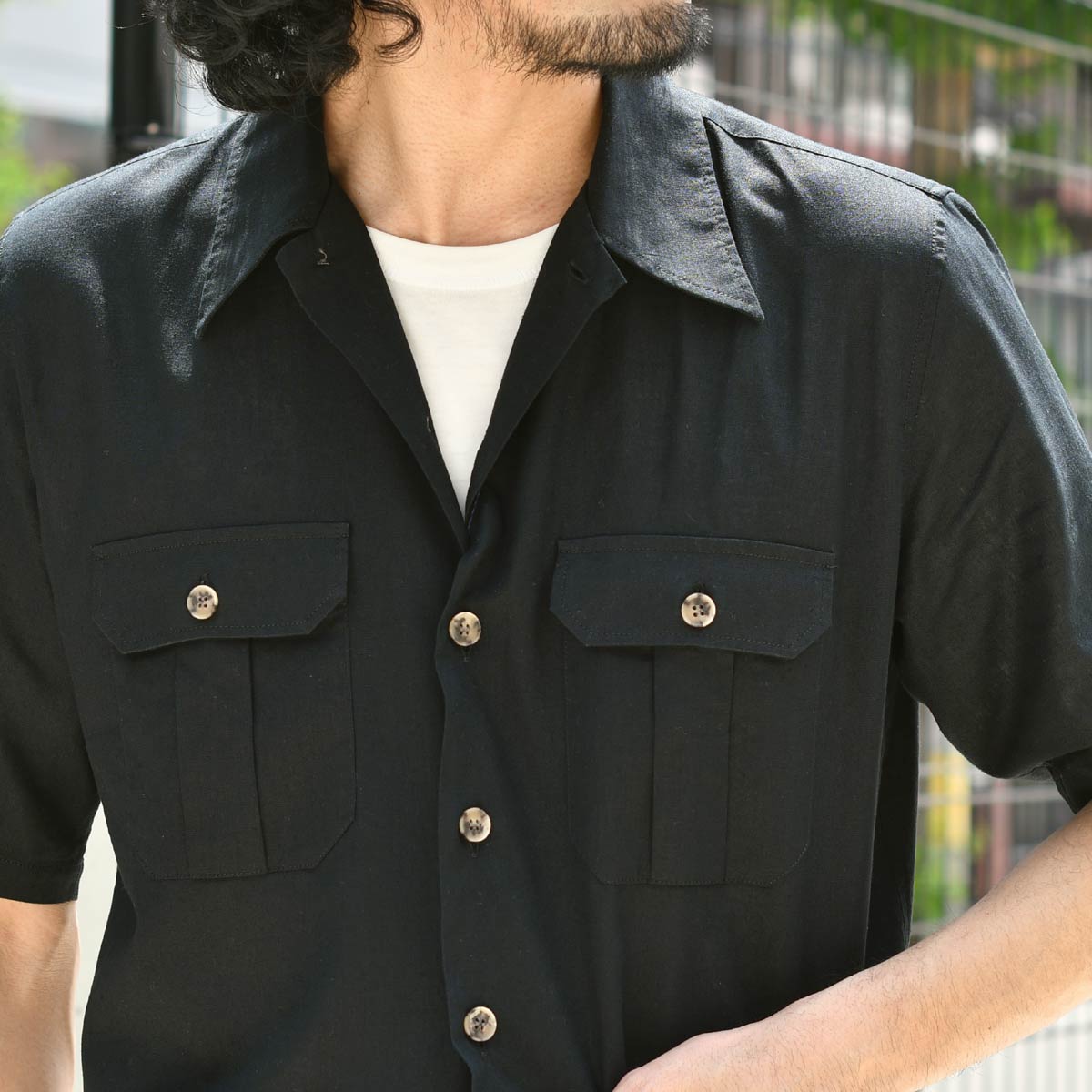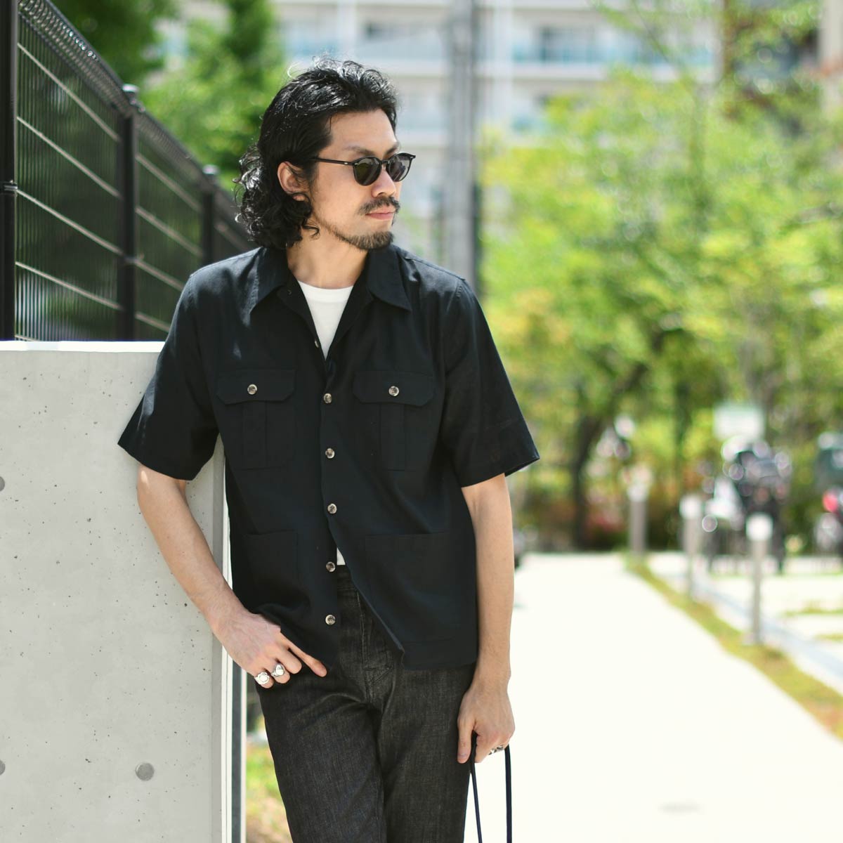 ORIAN【オリアン】別注半袖サファリシャツジャケットMJARMY CC 02U489 90 リネン コットン ブラック