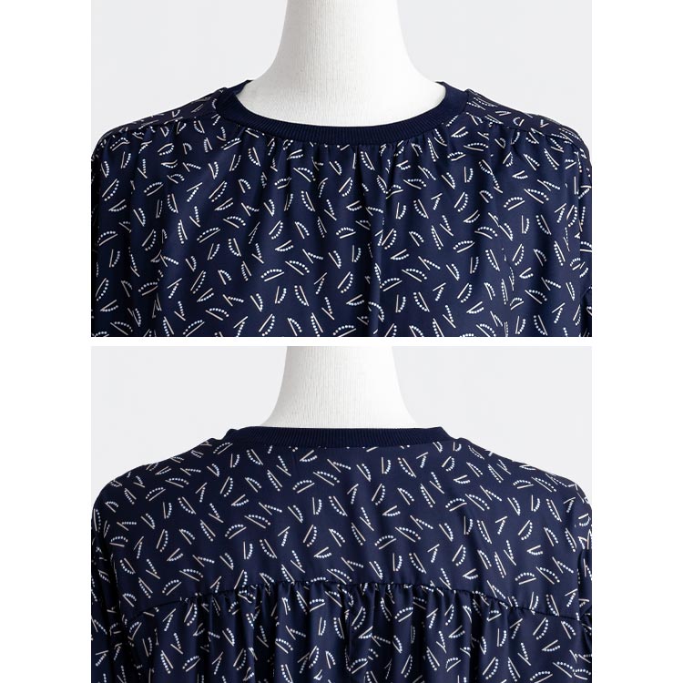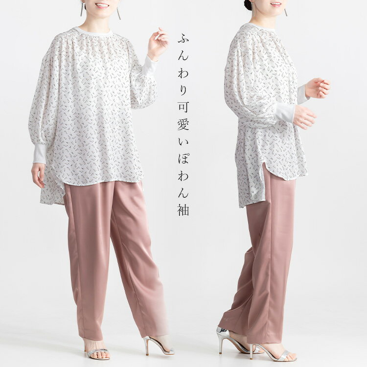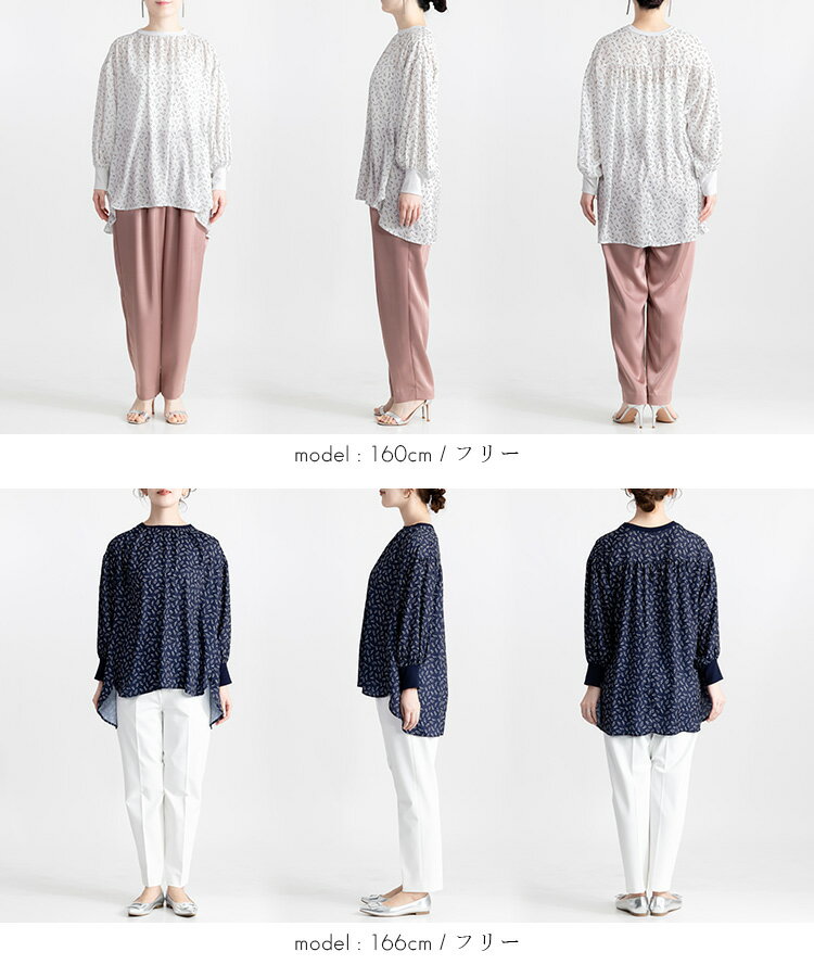 【MAX50%OFFセール開催中】【送料無料/新作】 リブ袖使いドレープブラウス 2色 M-L 洗える 長袖 レディースファッション トップス チュニック ブラウス プルオーバー クルーネック ドロップショルダー 体型カバー お尻隠し ぽわん袖 春秋冬 メt 8939