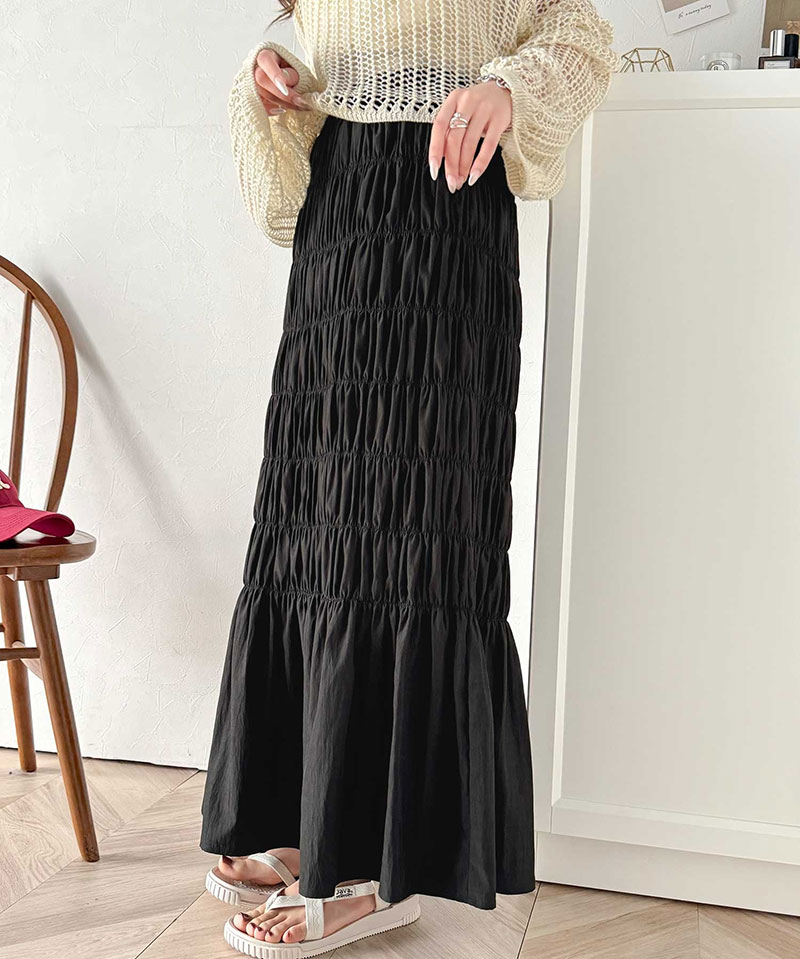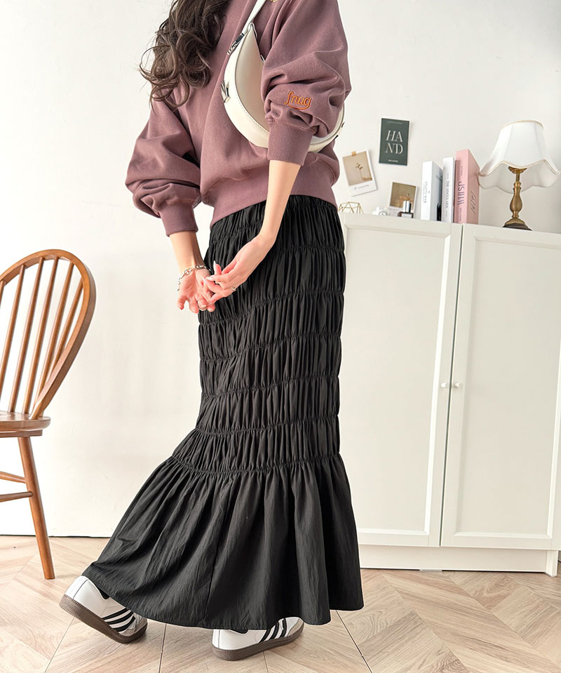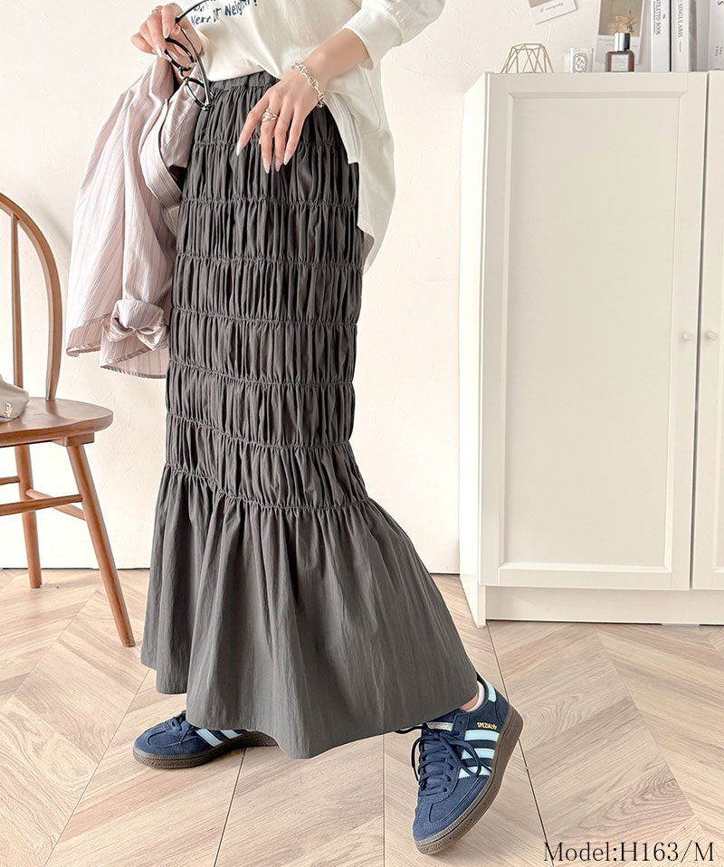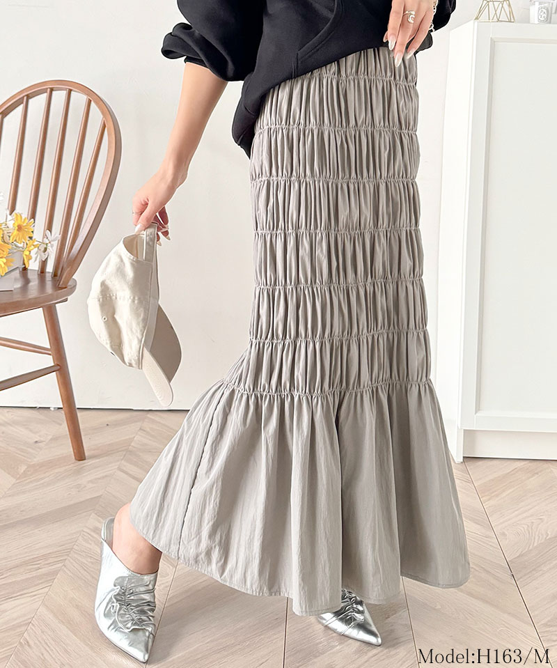 今ならまとめ買い3点以上で10%OFF 送料無料 ボトムス スカート レディース マーメイド 風 たっぷり ギャザー ロングスカート 大きいサイズ 秋 冬 クラシカルエルフ ce1240053