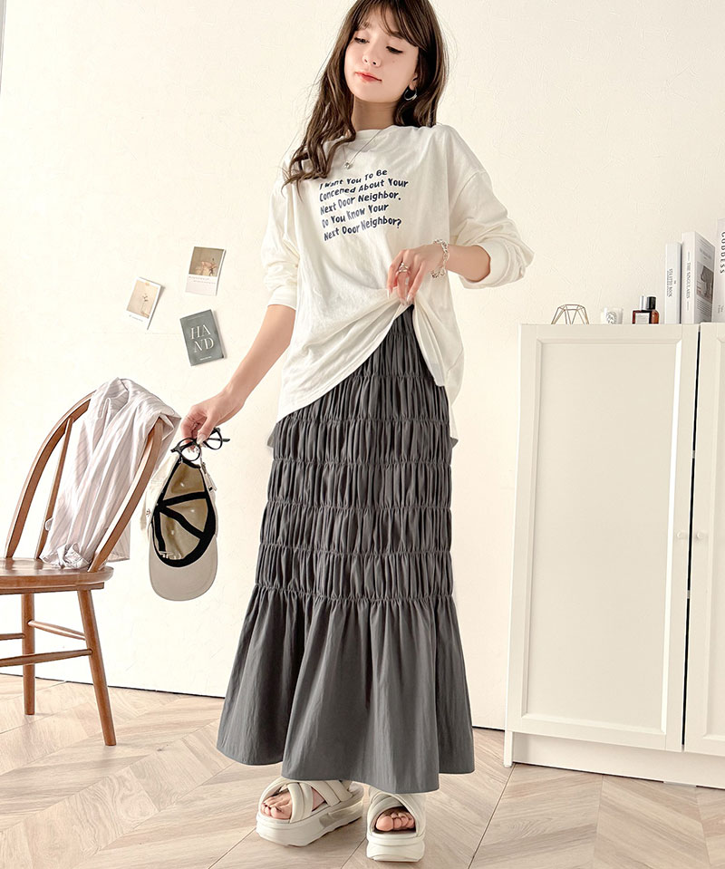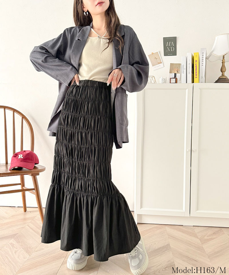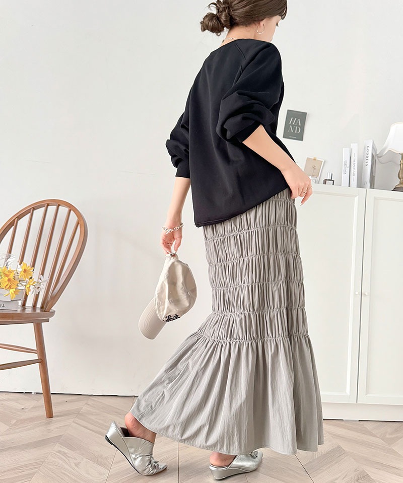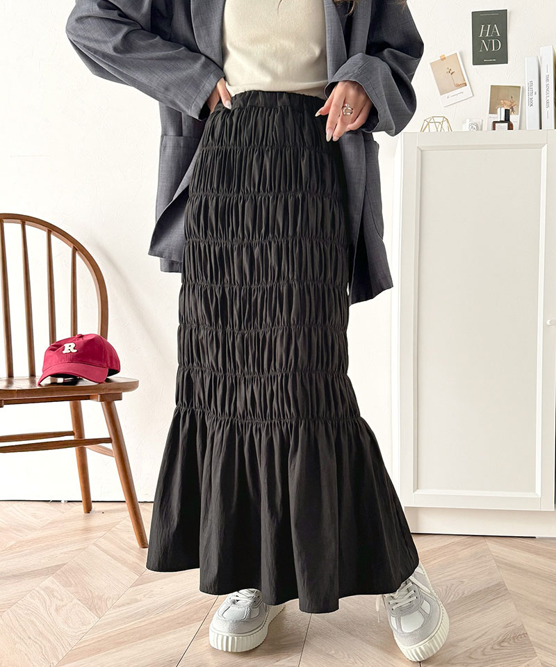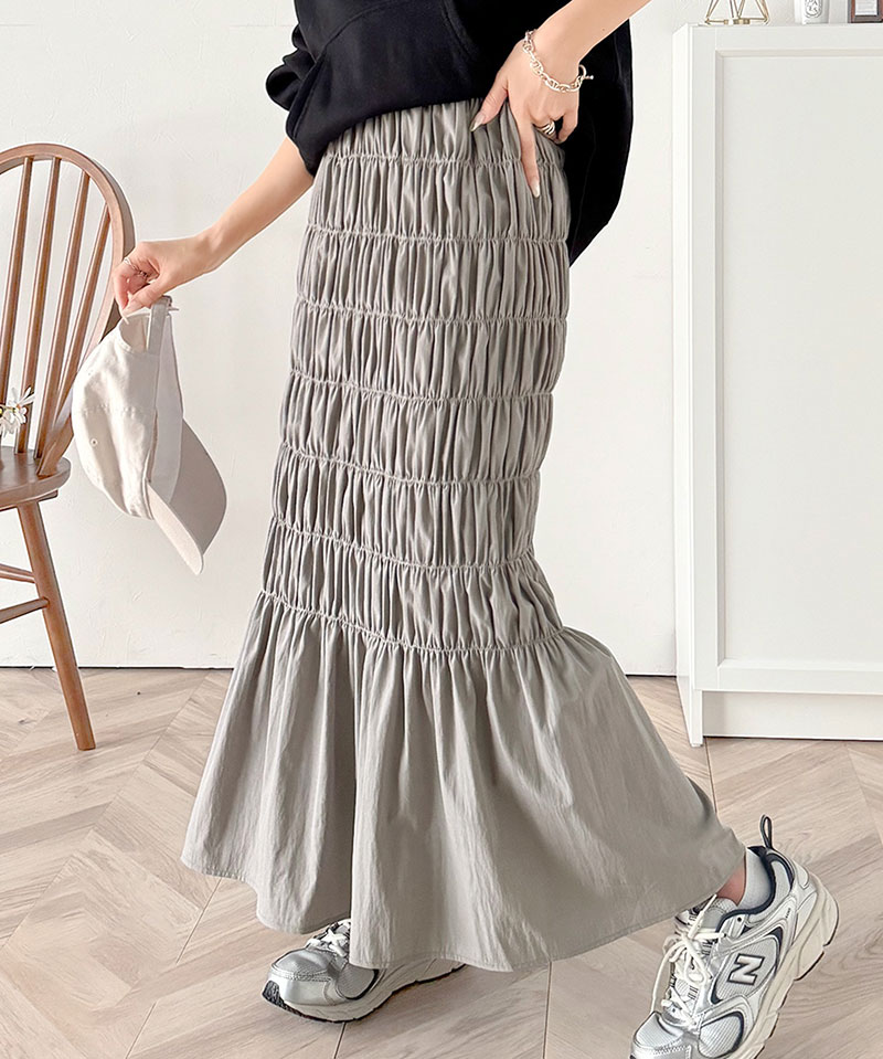 今ならまとめ買い3点以上で10%OFF 送料無料 ボトムス スカート レディース マーメイド 風 たっぷり ギャザー ロングスカート 大きいサイズ 秋 冬 クラシカルエルフ ce1240053