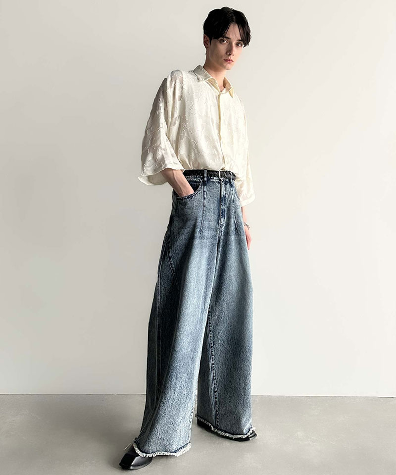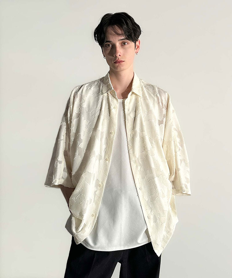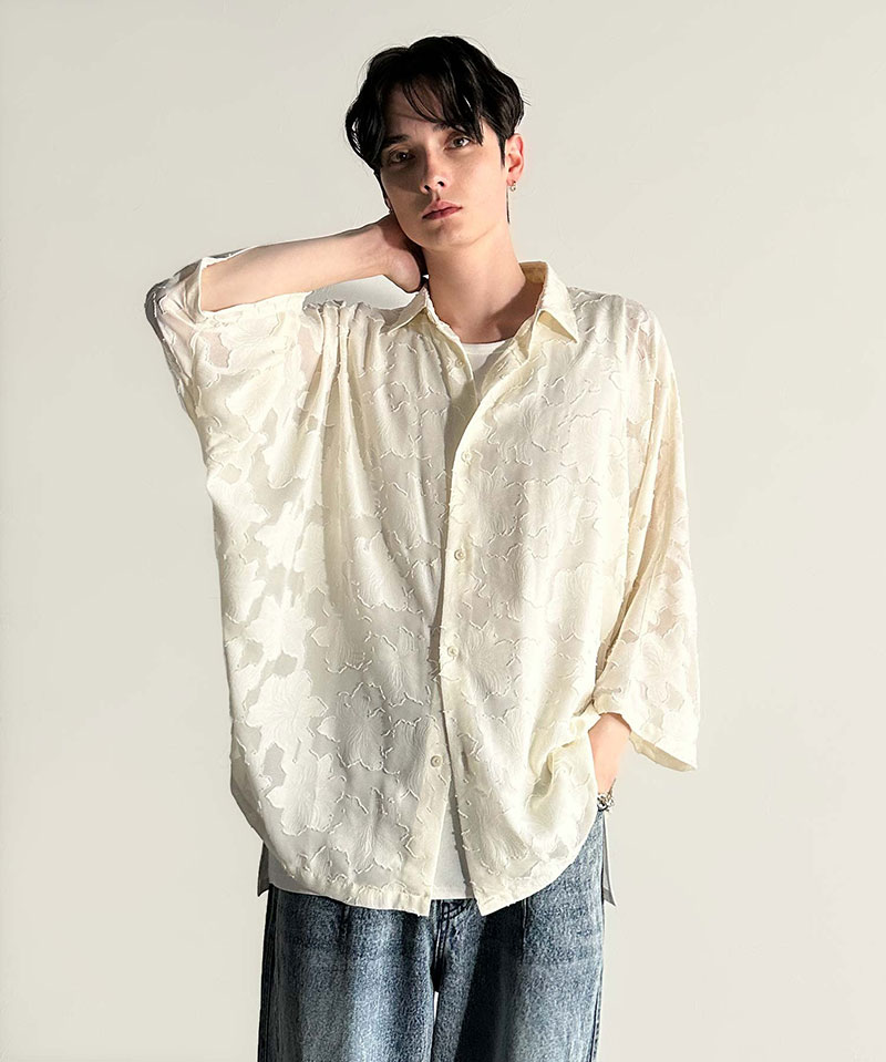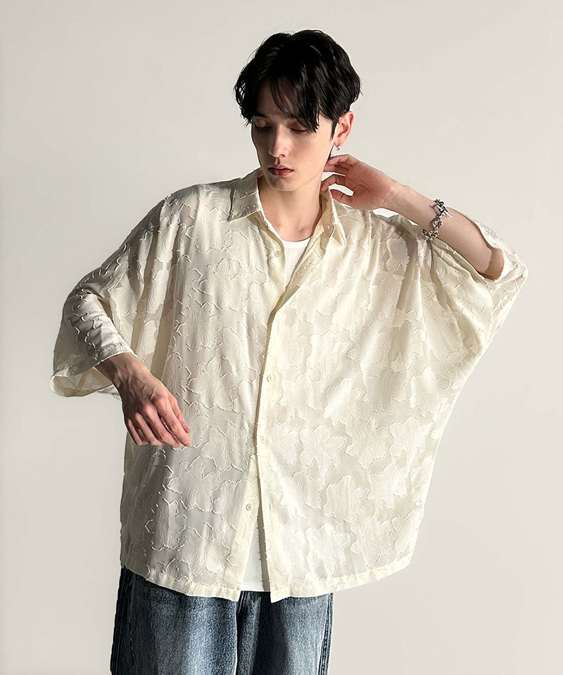 【Classical Origin】 トップス シャツ メンズ フラワー柄 ドルマンシャツ シアーシャツ ジャカード素材 さらり ドルマンシルエット 羽織 オン オフ オーバーサイズ トレンド ドレープ感 快適 大きいサイズ 春 夏 2025ss クラシカルエルフ co1150008