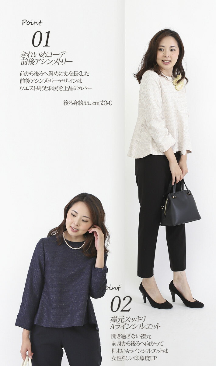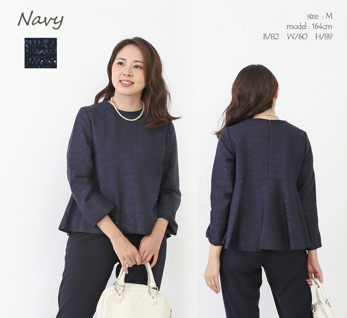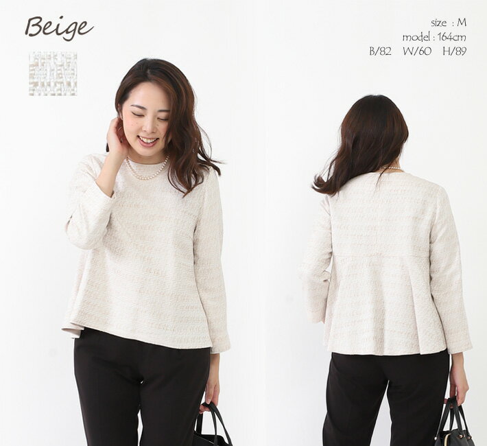 【 日本製 】 ツイード ジャケットプルオーバー ペプラム トップス セットアップ 卒業式 40代 30代 顔合わせ 母親 服装 50代 入学式 ママスーツ 母 セレモニー 秋 春 大きいサイズ きれいめオケージョン 【ラメツイードバックペプラムPO】<8026>