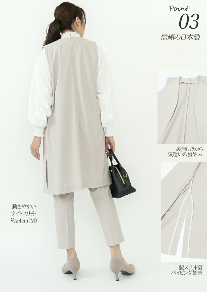 【 日本製 】 ジレ ロングジレ ロングベスト レディース ノーカラー ロング丈 ベスト 大きいサイズ フォーマル パンツスーツ セットアップ 入学式 ママ 母 卒業式 40代 30代 顔合わせ 母親 服装 50代 春夏 七五三 【SPXロングジレ】<8030>