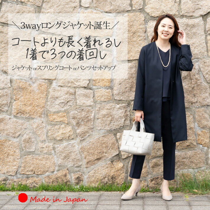 【 日本製 】 ロング ジャケット スプリングコート セレモニー コート レディース 春 ノーカラー 軽い ミドル丈 体型カバー 卒業式 コート 母 40代 30代 入学式 ママ 顔合わせ 母親 服装 50代 きれいめ 【パウダーツイルロングJK】<8039>