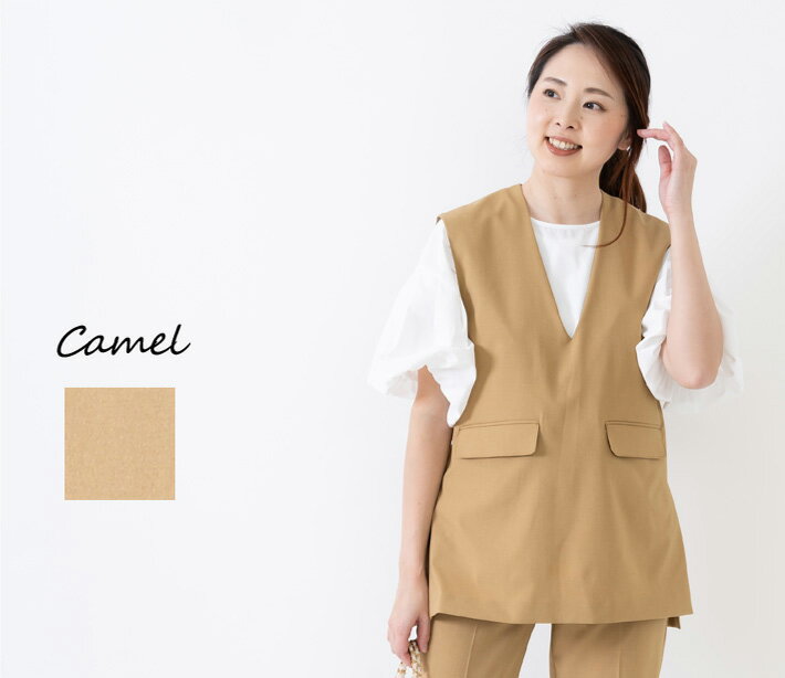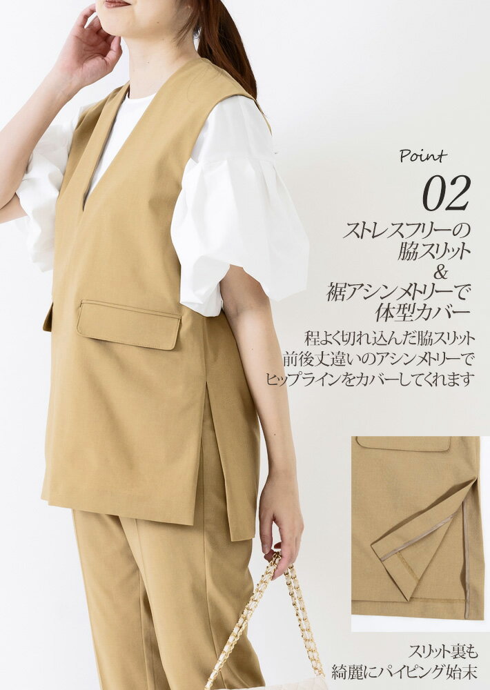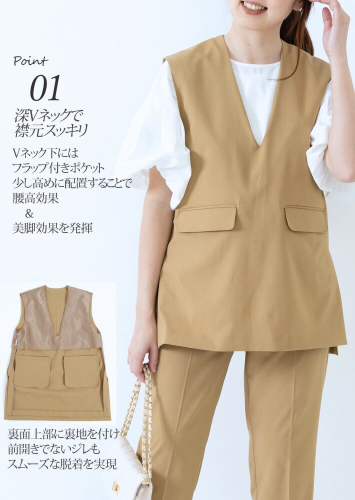 \スーパーSALE/【 日本製 】 ジレ コーデ レディース ベスト ノーカラー セットアップ パンツスーツ 夏 きれいめ 顔合わせ 母親 服装 50代 入学式 ママスーツ 卒業式 40代 30代 七五三 大きいサイズ お宮参り 春 秋【Vネックジレ】<8042>