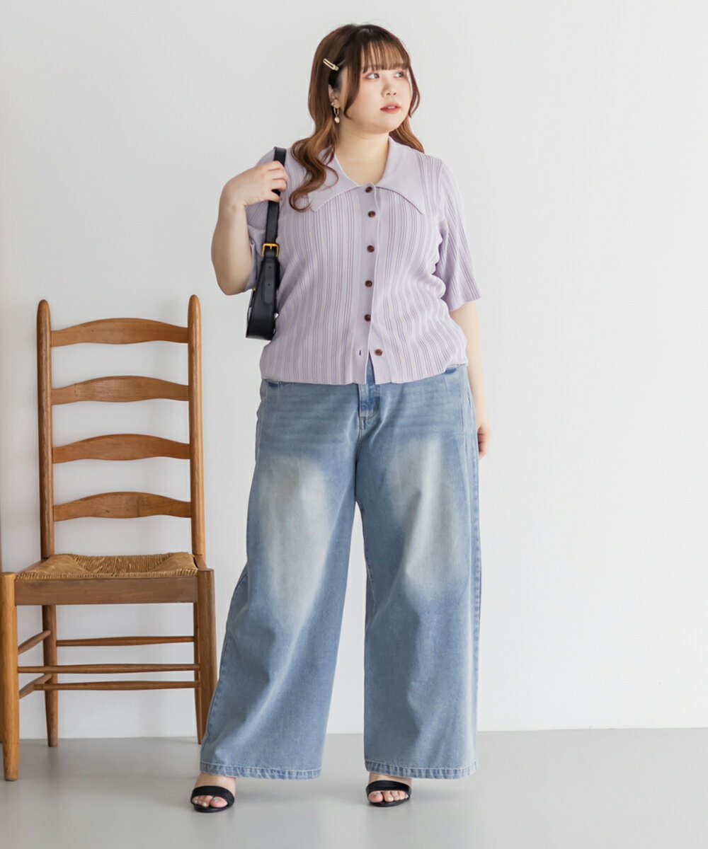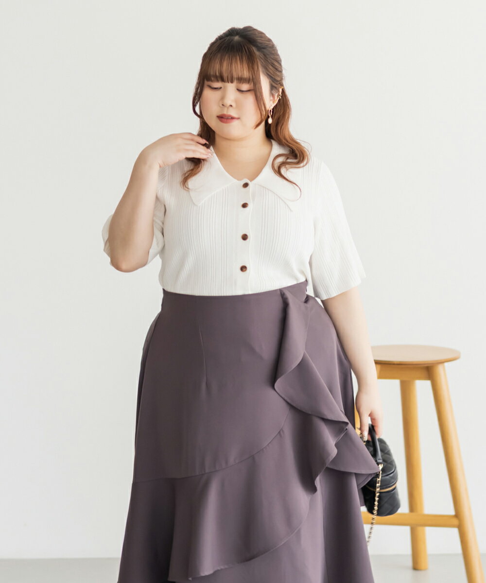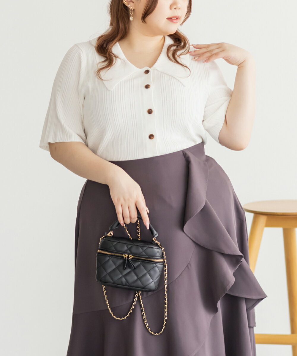 大きいサイズ レディース CLETTEオリジナル★襟付きリブ編みニット 【LLサイズ・3Lサイズ・4Lサイズ】【大きいサイズ・レディース】13号・15号・17号・19号・21号・23号