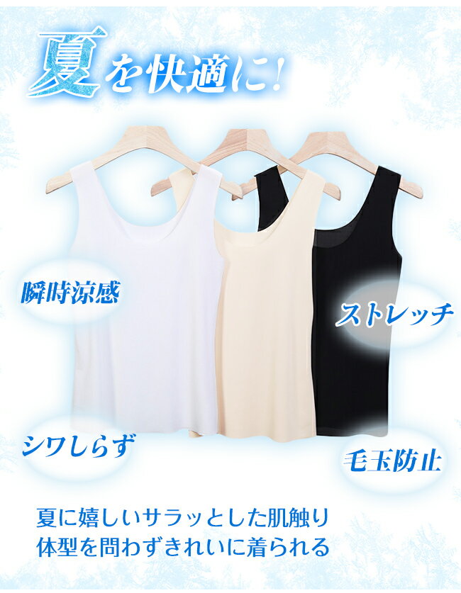 【2個で20%OFF!】インナー タンクトップ レディース 接触冷感 大きいサイズ トップス シンプル ベーシック LL 夏物 夏服 ゆったり 吸水速乾 UV 毛玉防止 さらさら