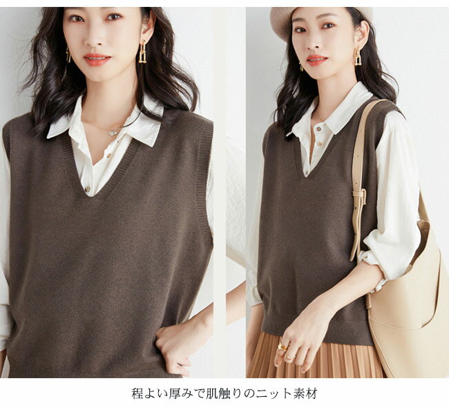 ニット ベスト レディース トップス ニットベスト 大きいサイズ タンクトップ 重ね着 ノースリーブ プルオーバー 無地 レイヤード ニットタンクトップ レイヤード きれいめ 大人